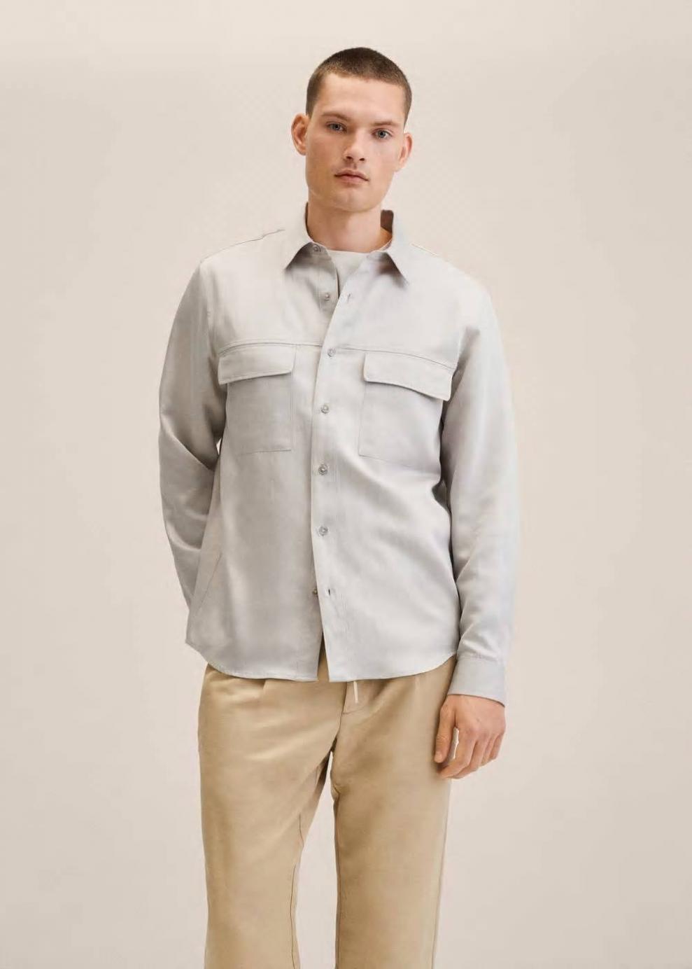 Regular fit Tejido mezcla de lino y lyocell Cuello regular Manga larga abotonada Dos bolsillos de solapa en el pecho Cierre de botones El modelo mide 187 cm y lleva una talla M Las prendas etiquetadas como Committed son productos que han sido confeccionadas con fibras y/o procesos de producción sostenible, reduciendo así su impacto ambiental. El objetivo de Mango es respaldar la implementación de prácticas más comprometidas con el medio ambiente, aumentando así, el número de prendas sostenibles en su colección.