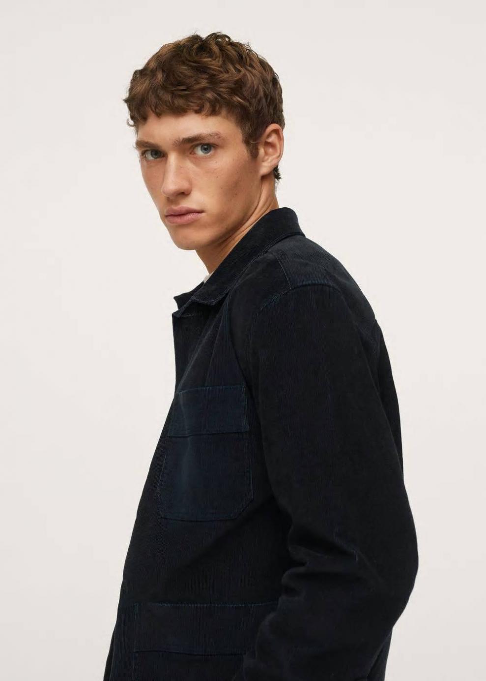 Diseño worker Regular fit Tejido mezcla de algodón sostenible Tejido de pana Cuello clásico Manga larga Bolsillo de parche en el pecho Dos bolsillos de parche en la parte delantera Cierre de botones Conjunto disponible El modelo mide 185 cm y lleva una talla M Las prendas etiquetadas como Committed son productos que han sido confeccionadas con fibras y/o procesos de producción sostenible, reduciendo así su impacto ambiental. El objetivo de Mango es respaldar la implementación de prácticas más comprometidas con el medio ambiente, aumentando así, el número de prendas sostenibles en su colección.