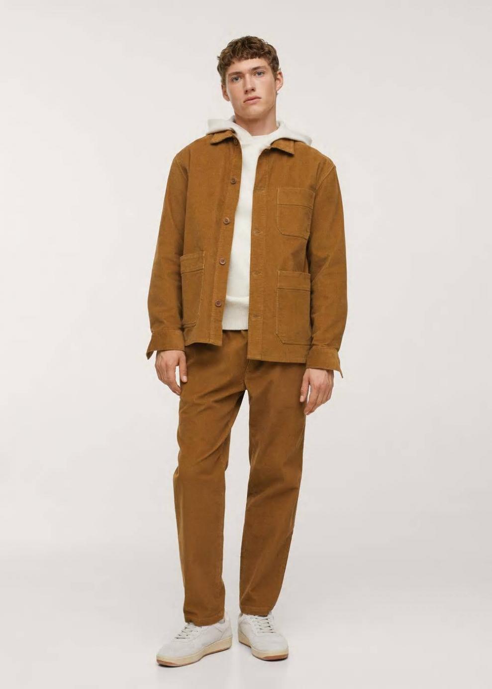 Diseño worker Regular fit Tejido mezcla de algodón sostenible Tejido de pana Cuello clásico Manga larga Bolsillo de parche en el pecho Dos bolsillos de parche en la parte delantera Cierre de botones Conjunto disponible El modelo mide 185 cm y lleva una talla M Las prendas etiquetadas como Committed son productos que han sido confeccionadas con fibras y/o procesos de producción sostenible, reduciendo así su impacto ambiental. El objetivo de Mango es respaldar la implementación de prácticas más comprometidas con el medio ambiente, aumentando así, el número de prendas sostenibles en su colección.