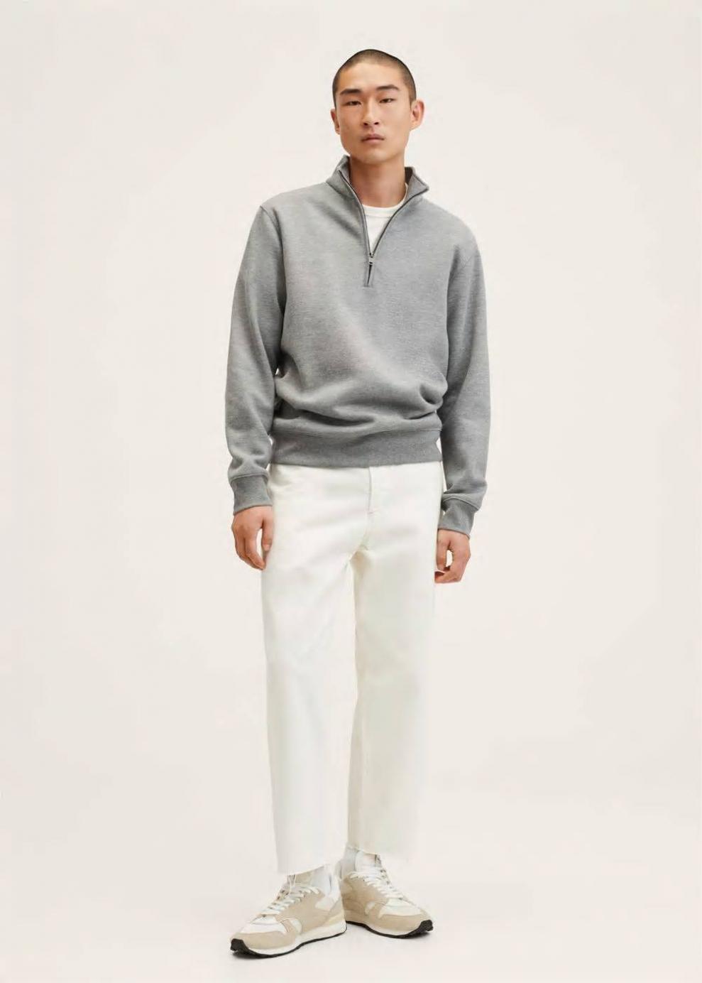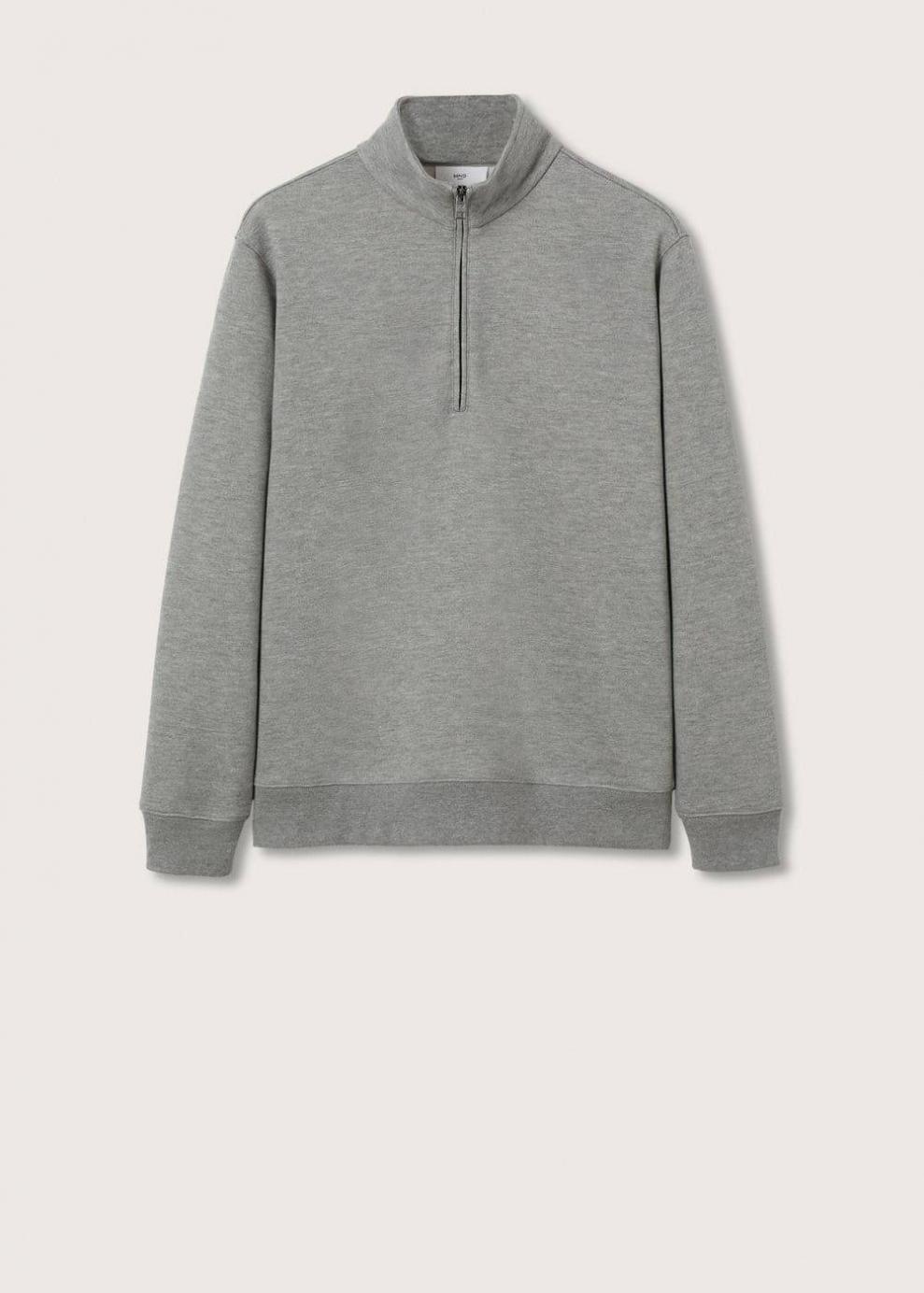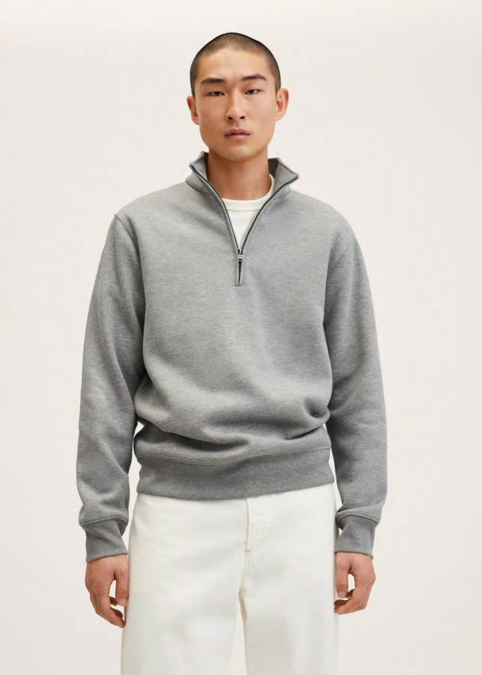 Exclusivo Online Tejido mezcla de algodón Cuello perkins con cremallera Manga larga Terminaciones elásticas en canalé