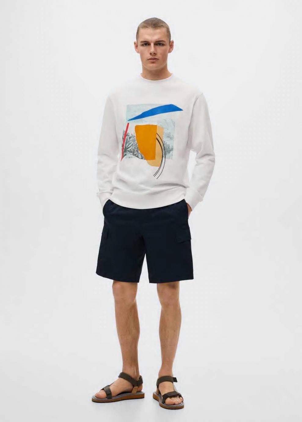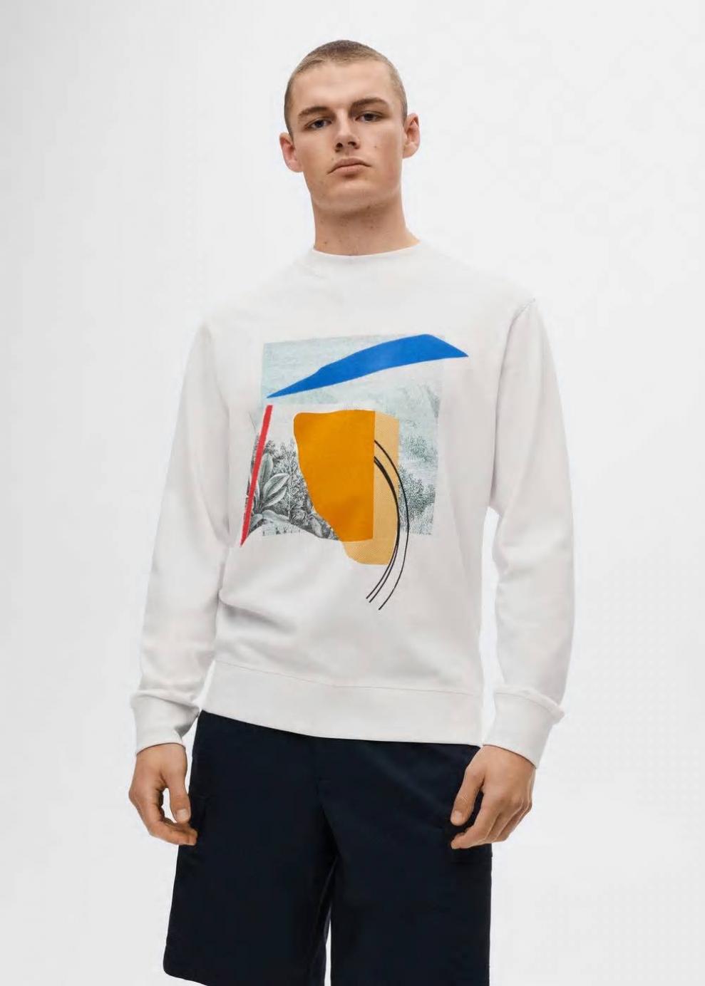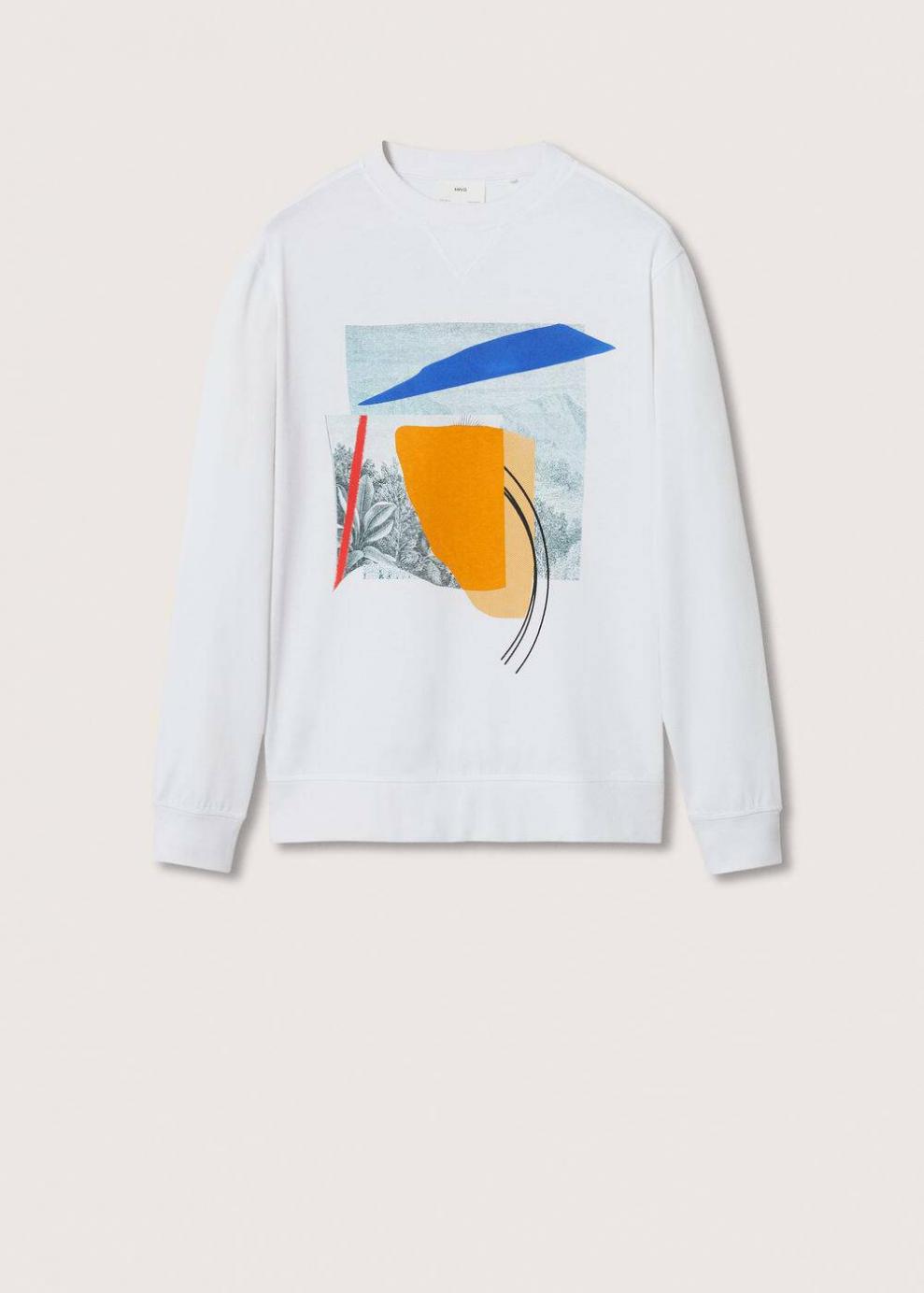 Tejido de algodón sostenible Cuello redondo Manga larga con puños elásticos Diseño estampado en el pecho El modelo mide 183 cm y lleva una talla M Las prendas etiquetadas como Committed son productos que han sido confeccionadas con fibras y/o procesos de producción sostenible, reduciendo así su impacto ambiental. El objetivo de Mango es respaldar la implementación de prácticas más comprometidas con el medio ambiente, aumentando así, el número de prendas sostenibles en su colección.