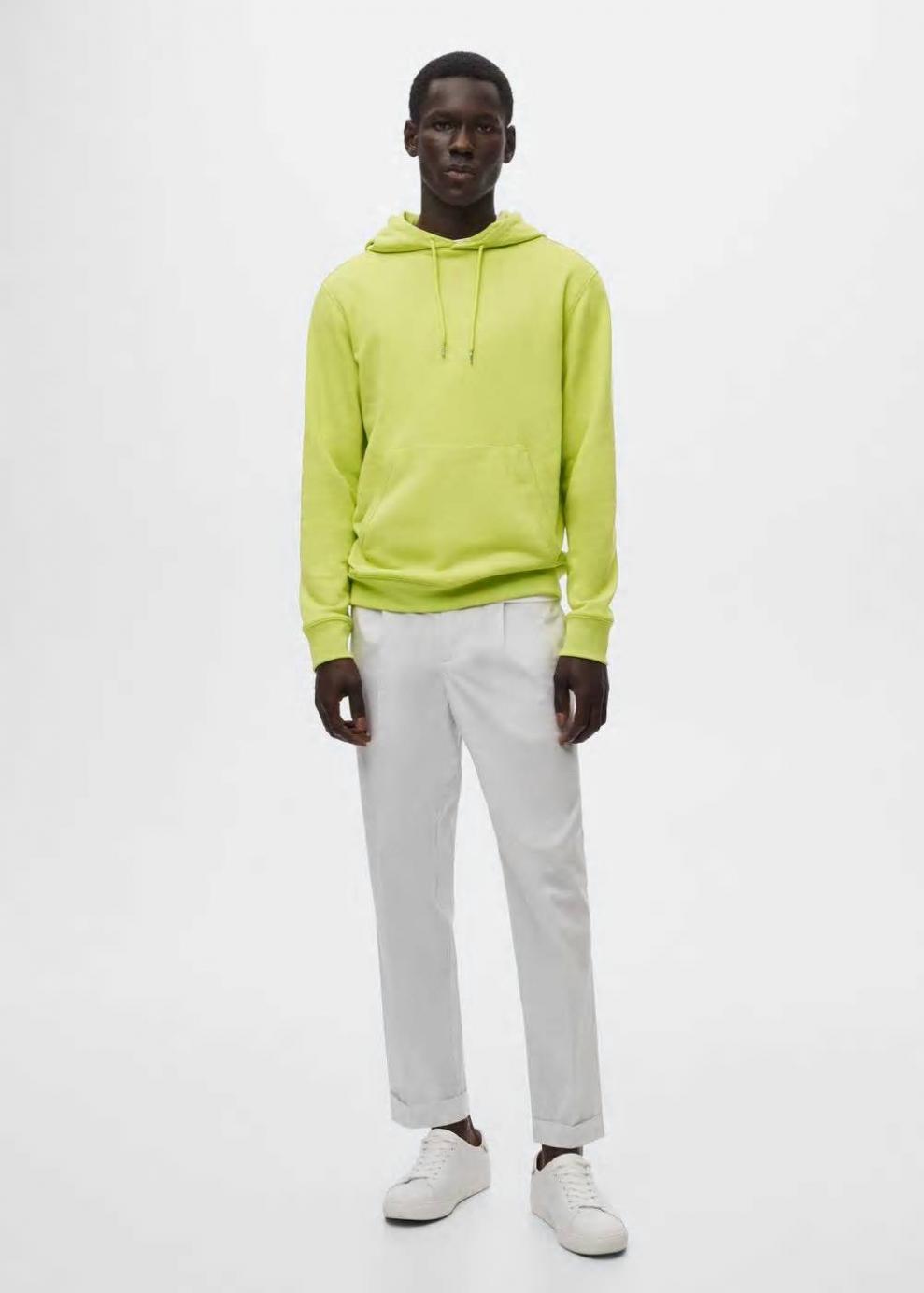 Tejido mezcla de algodón Capucha con cordón ajustable Manga larga con puños elásticos Bolsillo de canguro El modelo mide 183 cm y lleva una talla M Las prendas etiquetadas como Committed son productos que han sido confeccionadas con fibras y/o procesos de producción sostenible, reduciendo así su impacto ambiental. El objetivo de Mango es respaldar la implementación de prácticas más comprometidas con el medio ambiente, aumentando así, el número de prendas sostenibles en su colección.