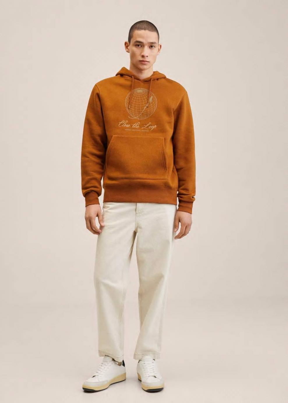 Tejido mezcla de algodón Regular fit Tejido de felpa Capucha Bolsillo canguro Manga larga Mensaje bordado Dibujo estampado en la parte delantera El modelo mide 185 cm y lleva una talla M Las prendas etiquetadas como Committed son productos que han sido confeccionadas con fibras y/o procesos de producción sostenible, reduciendo así su impacto ambiental. El objetivo de Mango es respaldar la implementación de prácticas más comprometidas con el medio ambiente, aumentando así, el número de prendas sostenibles en su colección.