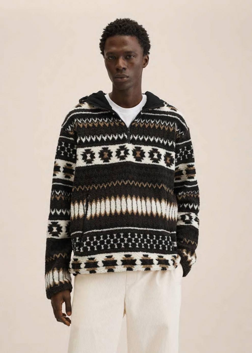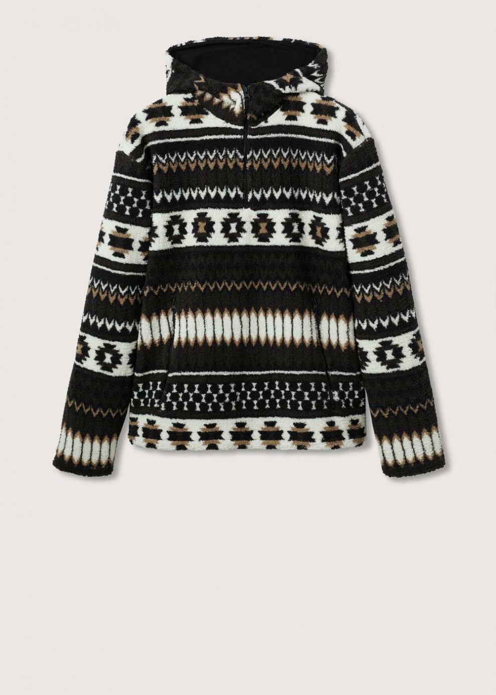 Relaxed Tejido jacquard étnico Capucha Manga larga Bolsillo de canguro con cremallera Cierre de cremallera El modelo mide 190 cm y lleva una talla M