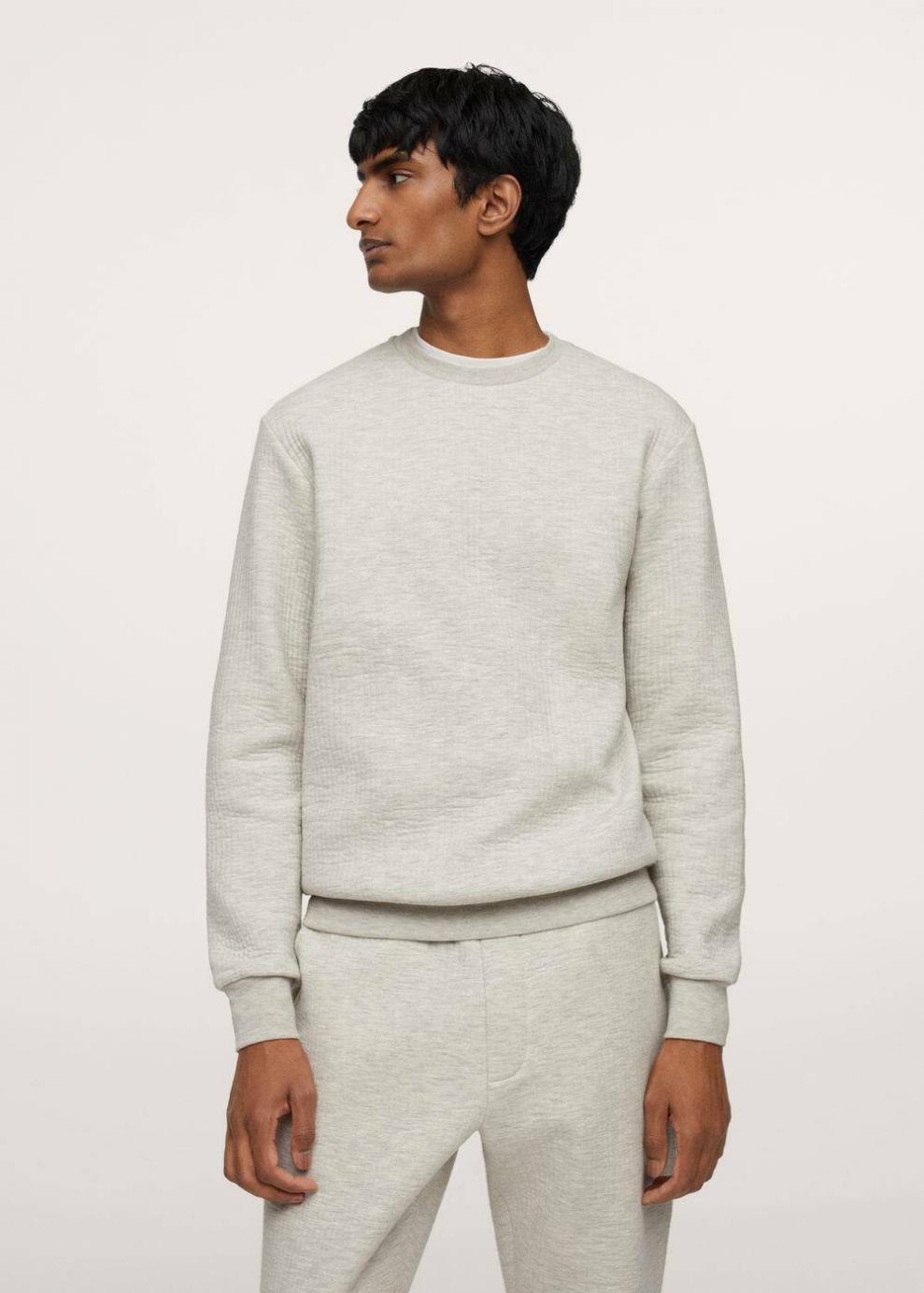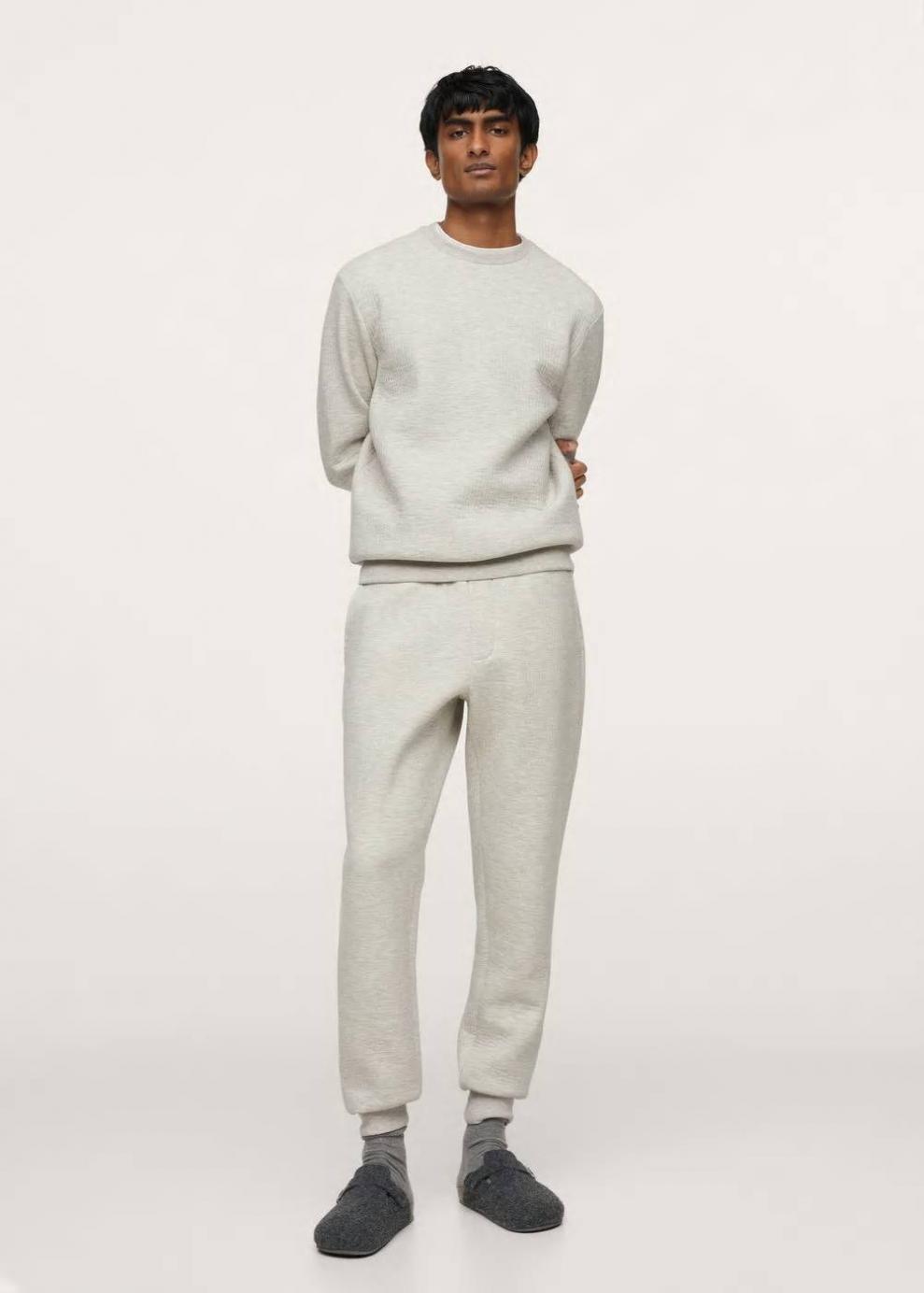 Pijama largo Tejido mezcla de algodón sostenible Tejido con estructura Cuello redondo Manga larga Terminaciones elásticas Conjunto disponible El modelo mide 190 cm y lleva una talla M
