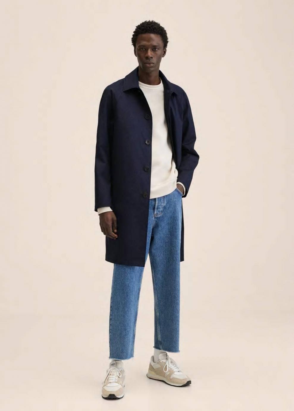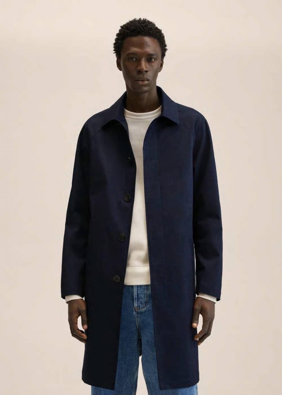 Diseño largo Tejido mezcla de algodón Water Repellent: Tejido técnico repelente al agua Cuello clásico Manga larga Dos bolsillos laterales Cierre de botones El modelo mide 190 cm y lleva una talla M Las prendas etiquetadas como Committed son productos que han sido confeccionadas con fibras y/o procesos de producción sostenible, reduciendo así su impacto ambiental. El objetivo de Mango es respaldar la implementación de prácticas más comprometidas con el medio ambiente, aumentando así, el número de prendas sostenibles en su colección.