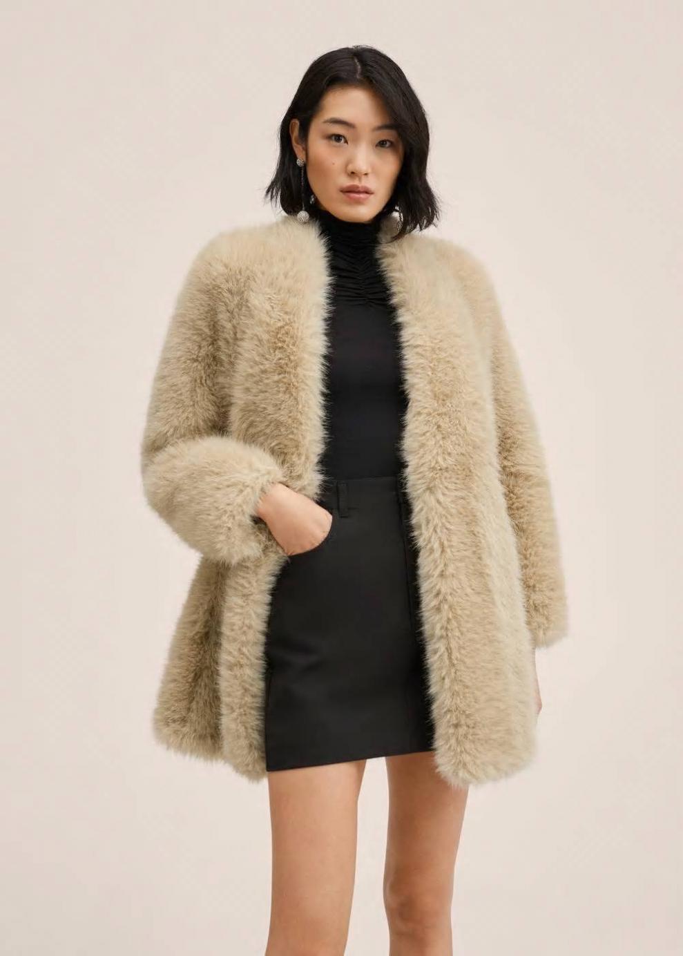 Solapas Efecto pelo Diseño recto Estructura pesada Solo forro Diseño medio Cuello pico Manga larga Dos bolsillos laterales Forro interior Cierre de gancho