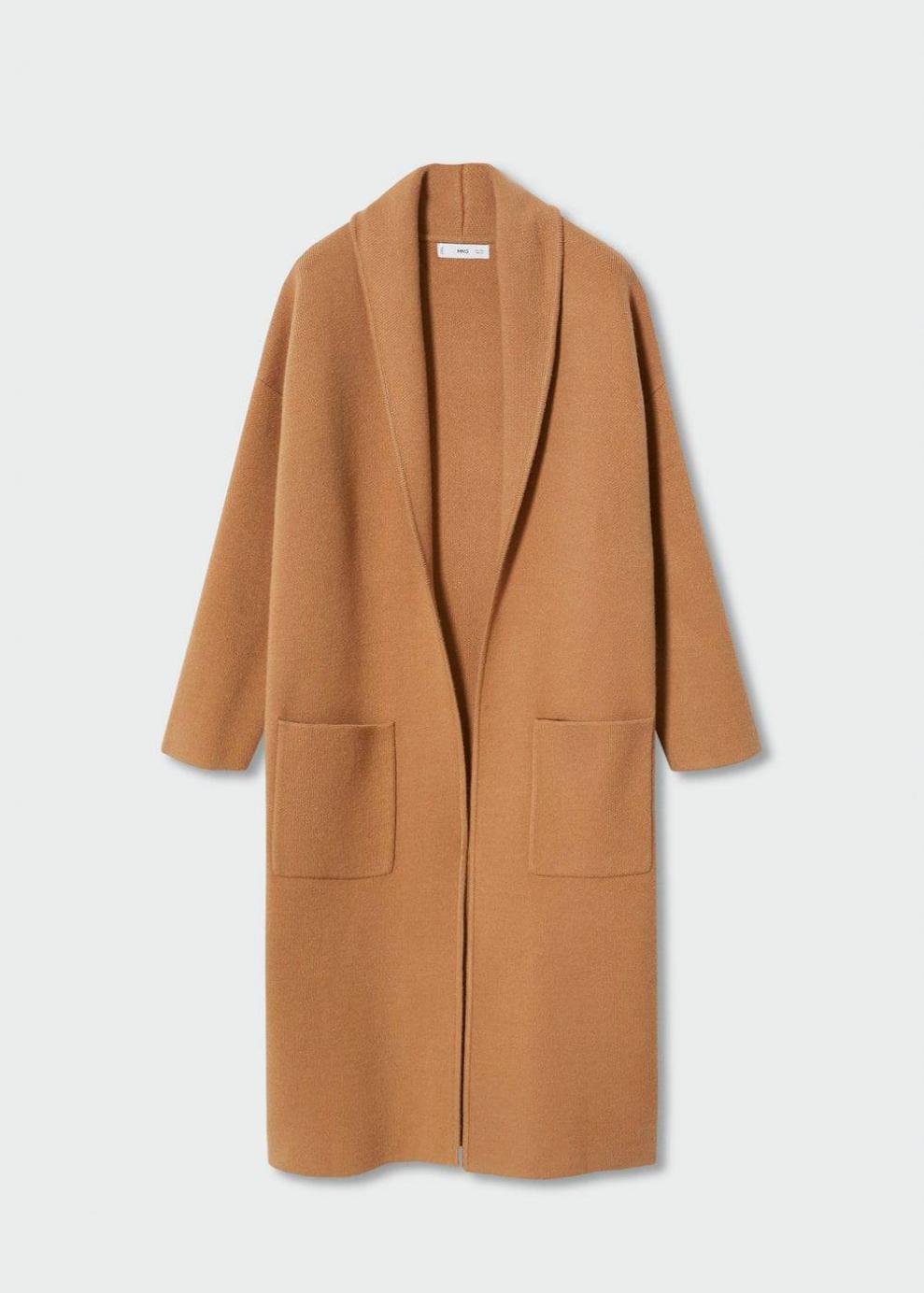 Tejido de punto Diseño oversize Diseño medio Solapas Cuello abierto Manga larga Dos bolsillos de parche en la parte delantera…