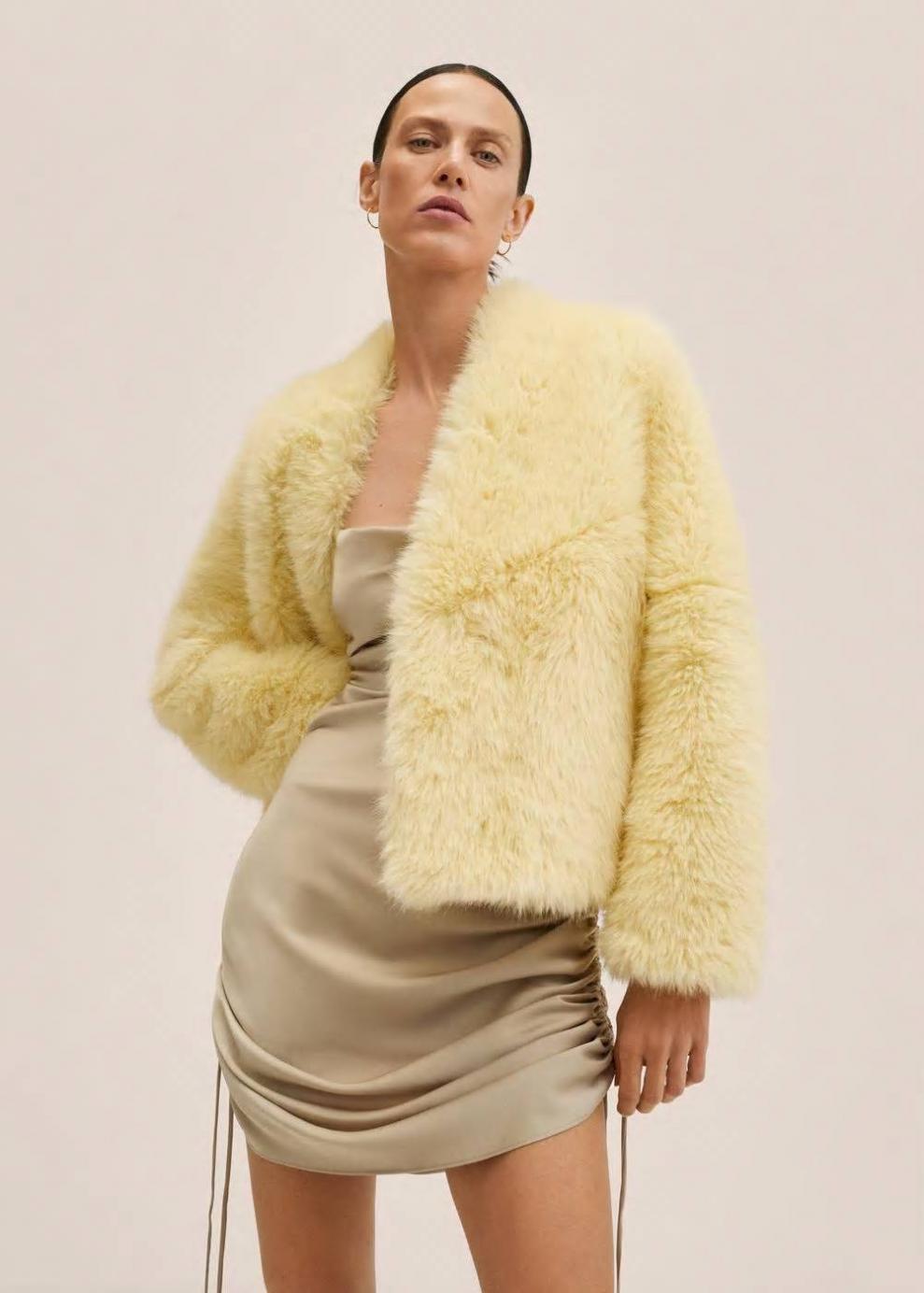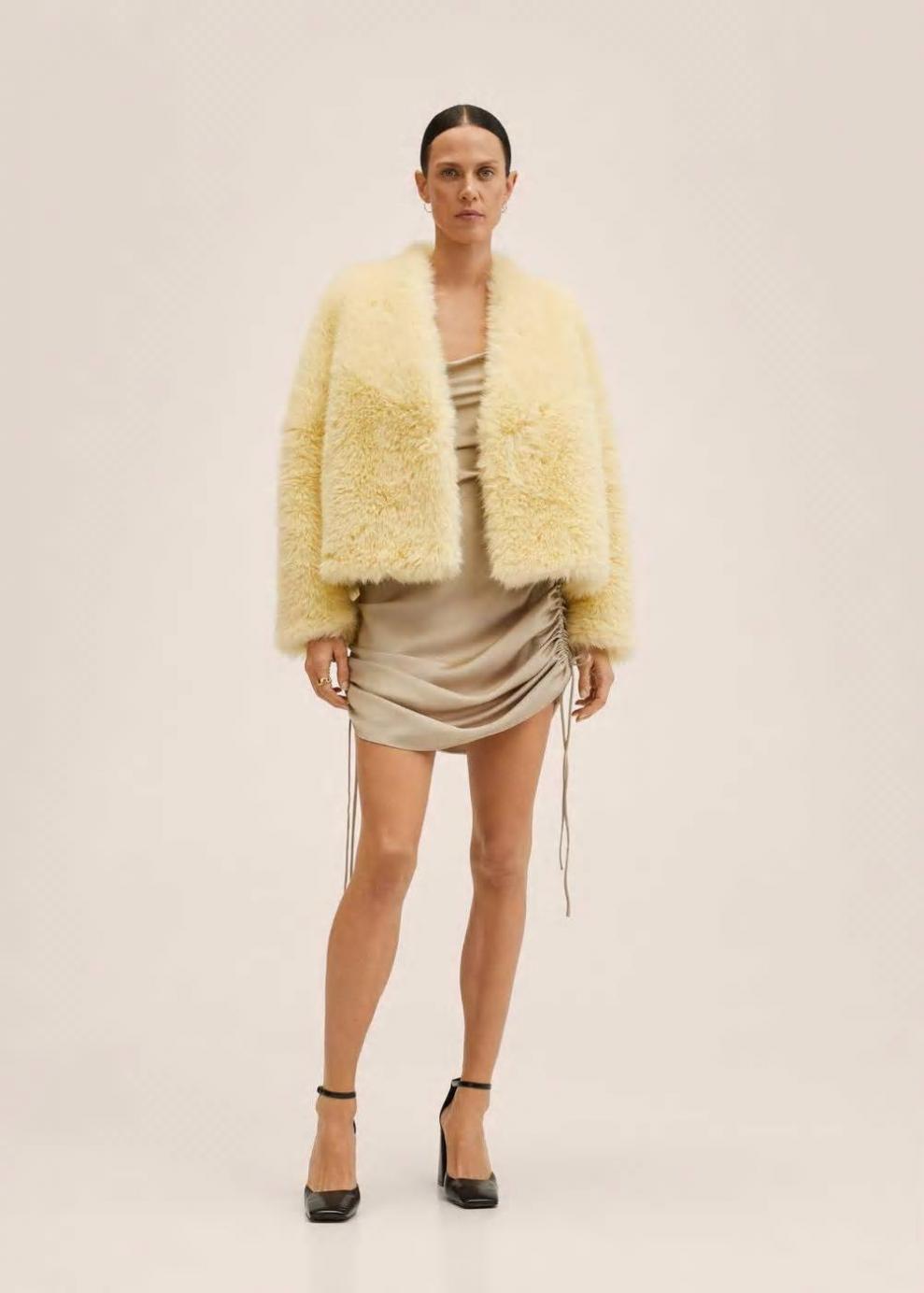 Cuello redondo Manga larga Tejido de pelo Diseño recto Estructura pesada Solo forro Cierre delantero Diseño oversize Diseño corto Cuello pico Bolsillos laterales Cierre de gancho Forro interior