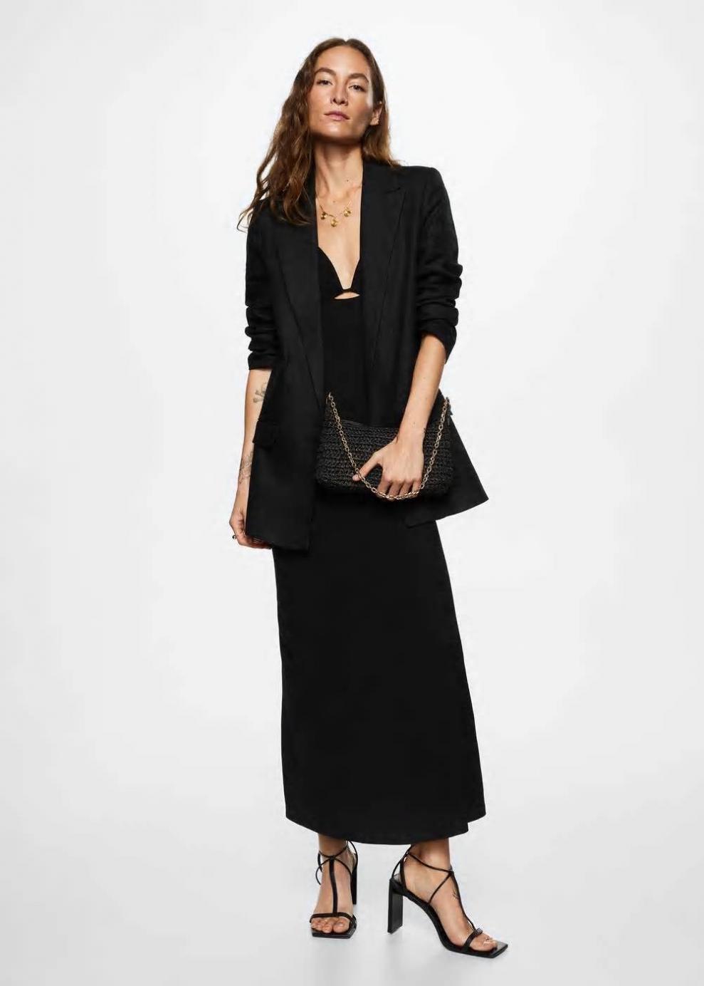 Colección Committed 100% Lino Diseño recto Diseño largo Estilo traje Cuello cruzado Solapa smoking Manga larga Bolsillos de solapa Las prendas etiquetadas como Committed son productos que han sido confeccionadas con fibras y/o procesos de producción sostenible, reduciendo así su impacto ambiental. El objetivo de Mango es respaldar la implementación de prácticas más comprometidas con el medio ambiente, aumentando así, el número de prendas sostenibles en su colección.