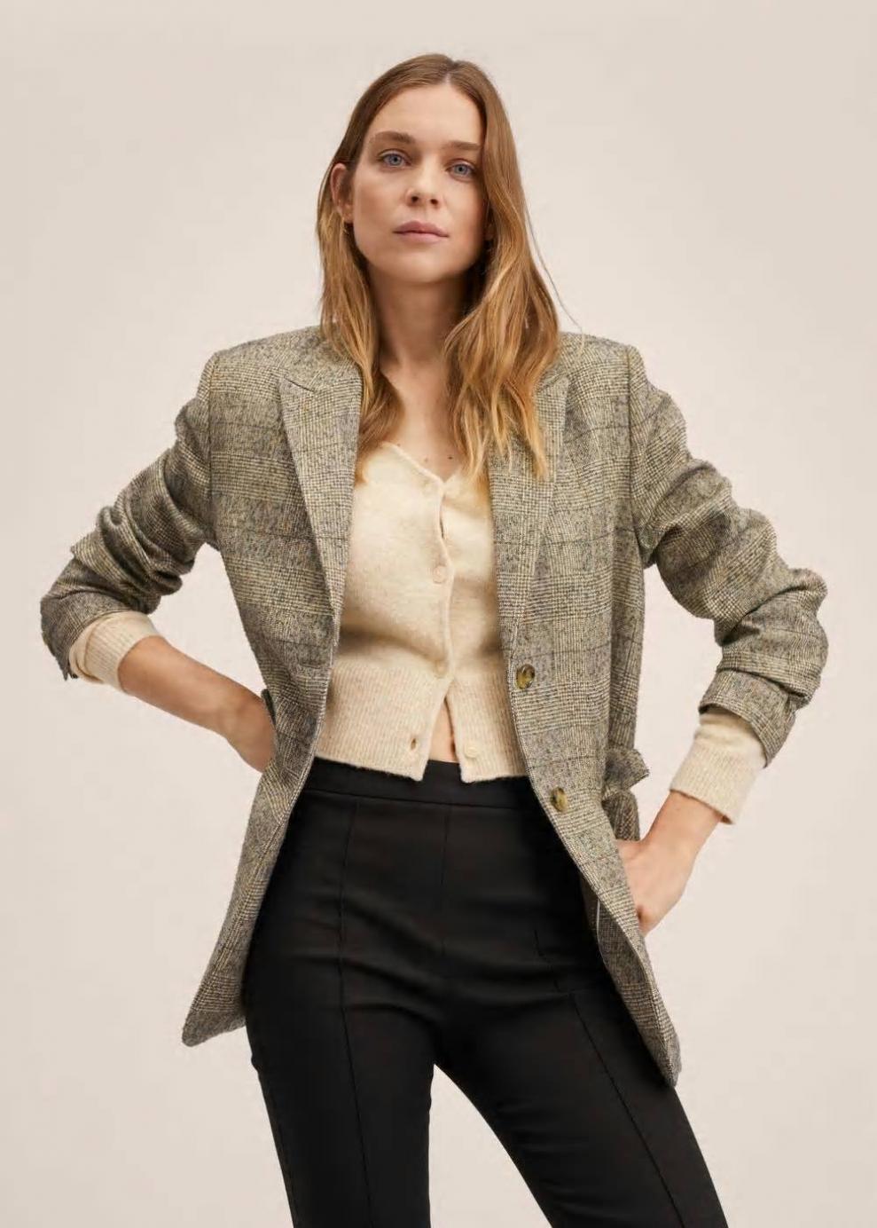 Colección Committed Tejido con lana Tejido cuadros Diseño recto Diseño largo Estilo masculino Cuello pico con solapa Manga larga abotonada Dos bolsillos de solapa Abertura posterior Forro interior Cierre de botones en la parte delantera Exclusivo Online Las prendas etiquetadas como Committed son productos que han sido confeccionadas con fibras y/o procesos de producción sostenible, reduciendo así su impacto ambiental. El objetivo de Mango es respaldar la implementación de prácticas más comprometidas con el medio ambiente, aumentando así, el número de prendas sostenibles en su colección.