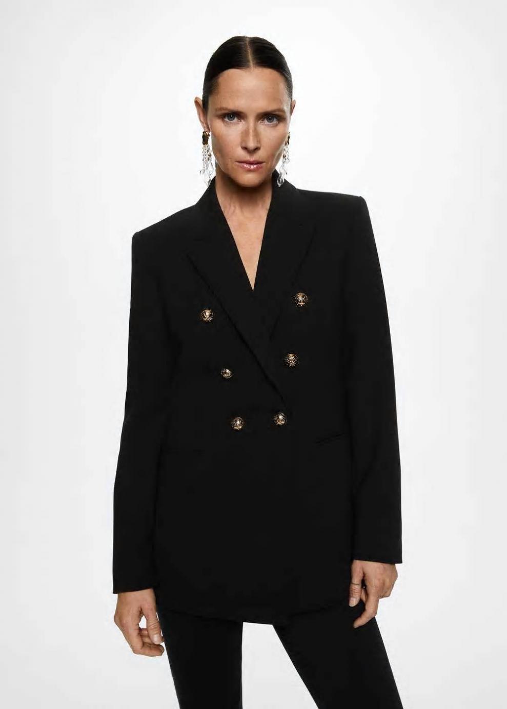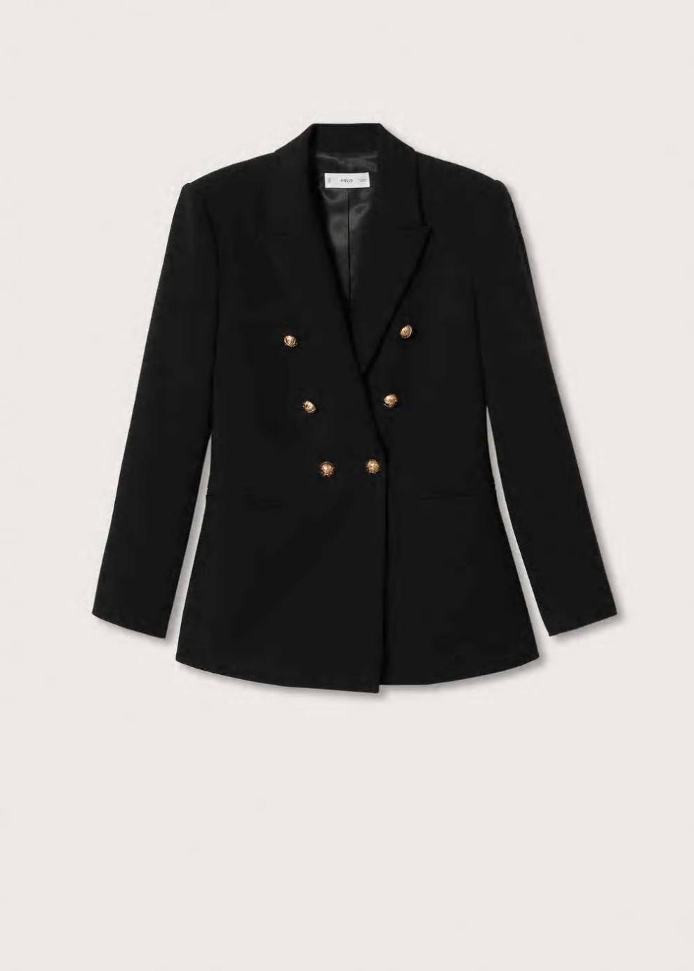 Colección Committed Diseño doble botonadura Diseño entallado Diseño largo Cuello pico con solapa Manga larga Botones efecto joya Forro interior Cierre de botones en la parte delantera Disponible Plus Las prendas etiquetadas como Committed son productos que han sido confeccionadas con fibras y/o procesos de producción sostenible, reduciendo así su impacto ambiental. El objetivo de Mango es respaldar la implementación de prácticas más comprometidas con el medio ambiente, aumentando así, el número de prendas sostenibles en su colección.