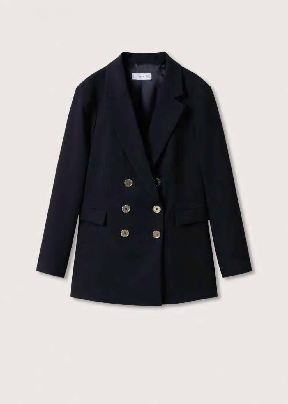 Colección Committed Diseño estructurado Diseño recto Diseño largo Diseño doble botonadura Estilo traje Cuello pico con solapa Solapas con muesca Manga larga Dos bolsillos de solapa en la parte frontal Forro interior Cierre de botones en la parte delantera Total look Las prendas etiquetadas como Committed son productos que han sido confeccionadas con fibras y/o procesos de producción sostenible, reduciendo así su impacto ambiental. El objetivo de Mango es respaldar la implementación de prácticas más comprometidas con el medio ambiente, aumentando así, el número de prendas sostenibles en su colección.