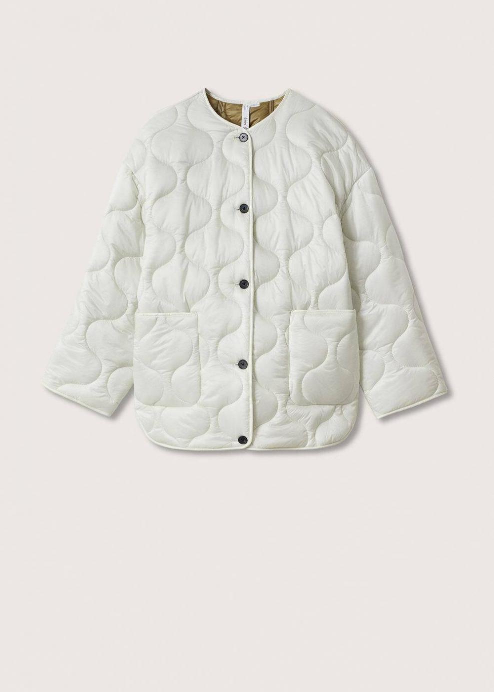 Colección Committed Water Repellent: Tejido técnico repelente al agua Diseño acolchado Diseño medio Diseño oversize Cuello redondo Manga larga con puños abotonados Dos bolsillos de parche en la parte delantera Relleno de poliéster reciclado Cierre de botones en la parte delantera Las prendas etiquetadas como Committed son productos que han sido confeccionadas con fibras y/o procesos de producción sostenible, reduciendo así su impacto ambiental. El objetivo de Mango es respaldar la implementación de prácticas más comprometidas con el medio ambiente, aumentando así, el número de prendas sostenibles en su colección.