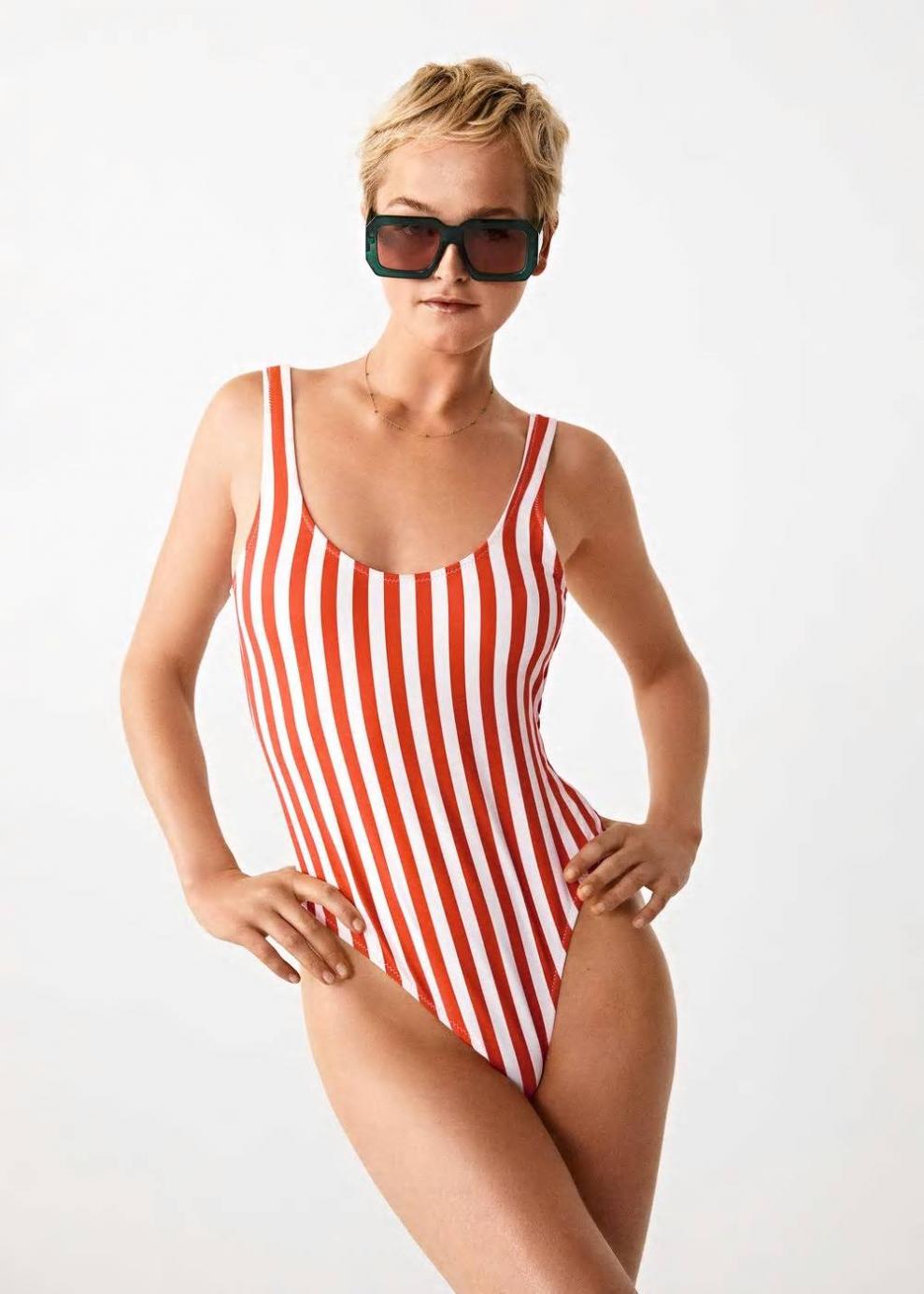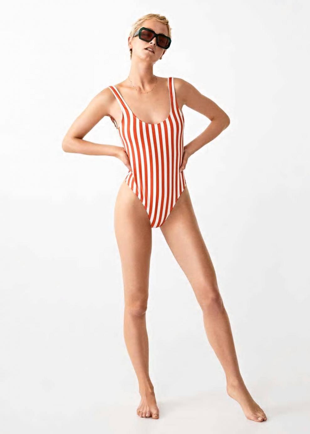 Estampado de rayas Escote redondo Tirantes anchos Forro interior Estilo brasileña Colección baño…