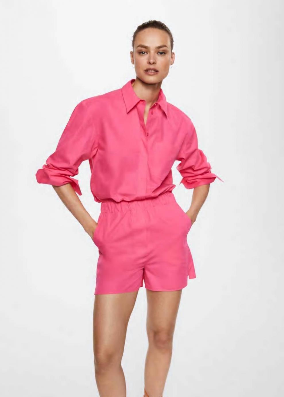 Tejido mezcla de algodón Tejido ligero Diseño corto Dos bolsillos laterales Disponible en liso o estampado Total look Las prendas etiquetadas como Committed son productos que han sido confeccionadas con fibras y/o procesos de producción sostenible, reduciendo así su impacto ambiental. El objetivo de Mango es respaldar la implementación de prácticas más comprometidas con el medio ambiente, aumentando así, el número de prendas sostenibles en su colección.