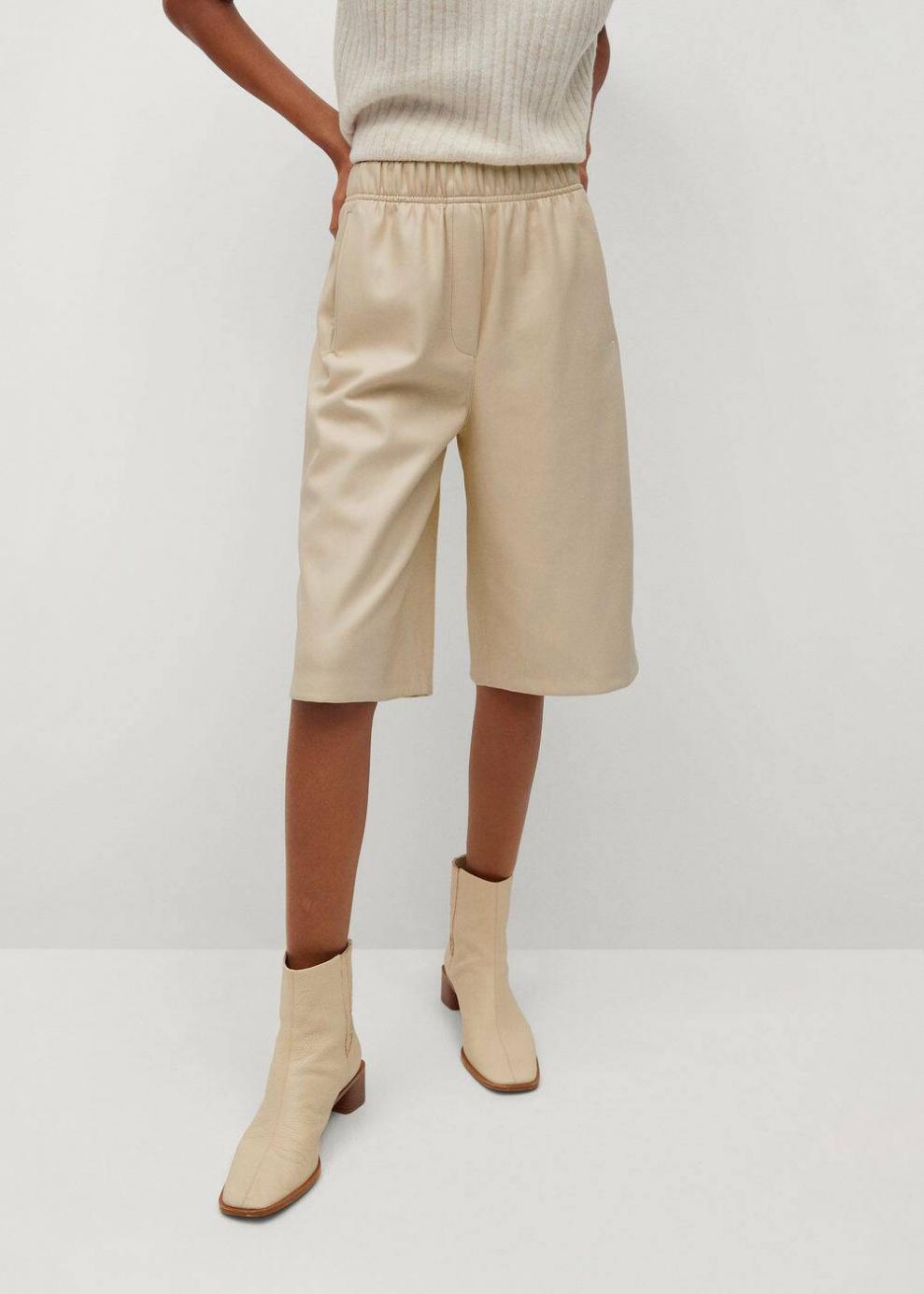 Efecto piel Diseño recto Tiro alto Cintura elástica Bolsillos laterales Dos bolsillos de ribete en la parte posterior Forro interior…