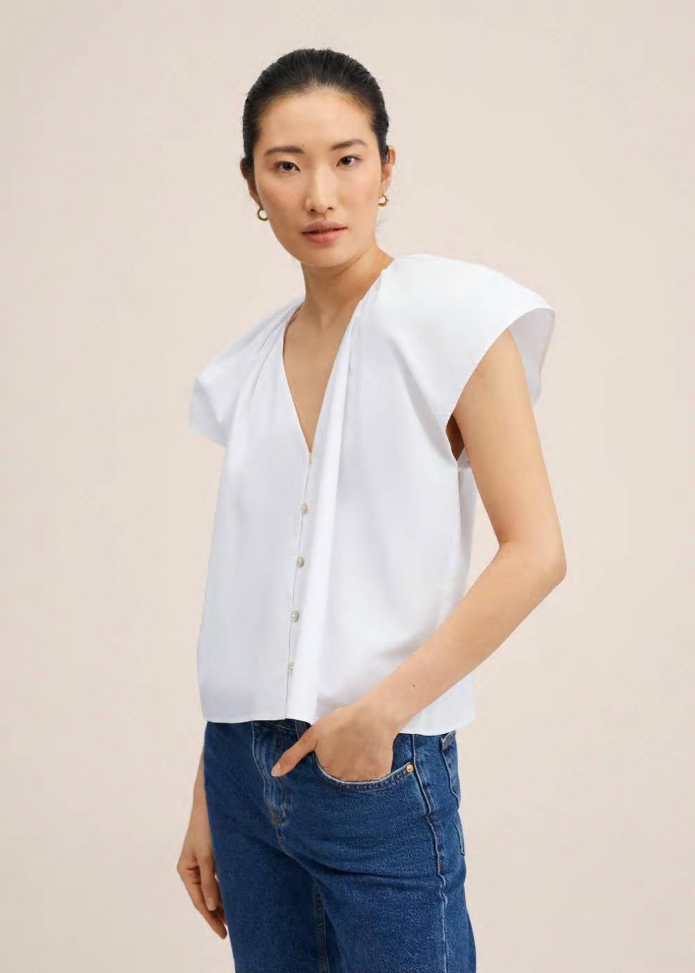 Colección Committed Tejido ligero Cierre delantero Diseño estándar Diseño evasé Tejido 100% algodón Tejido popelín de algodón Cuello pico Sin mangas Detalle fruncido en el cuello Cierre de botones en la parte delantera Las prendas etiquetadas como Committed son productos que han sido confeccionadas con fibras y/o procesos de producción sostenible, reduciendo así su impacto ambiental. El objetivo de Mango es respaldar la implementación de prácticas más comprometidas con el medio ambiente, aumentando así, el número de prendas sostenibles en su colección.