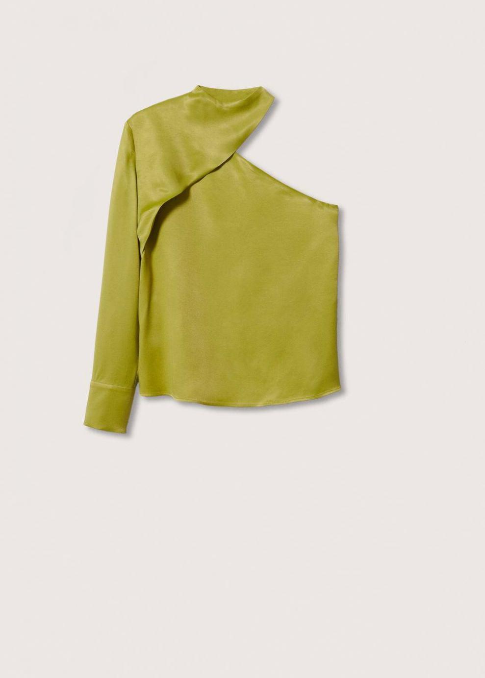 Mujer Blusa asimétrica satinada Verde | Camisas Mango