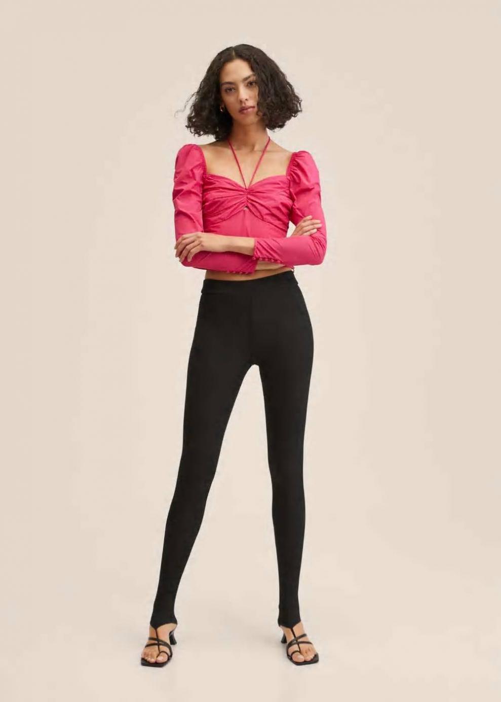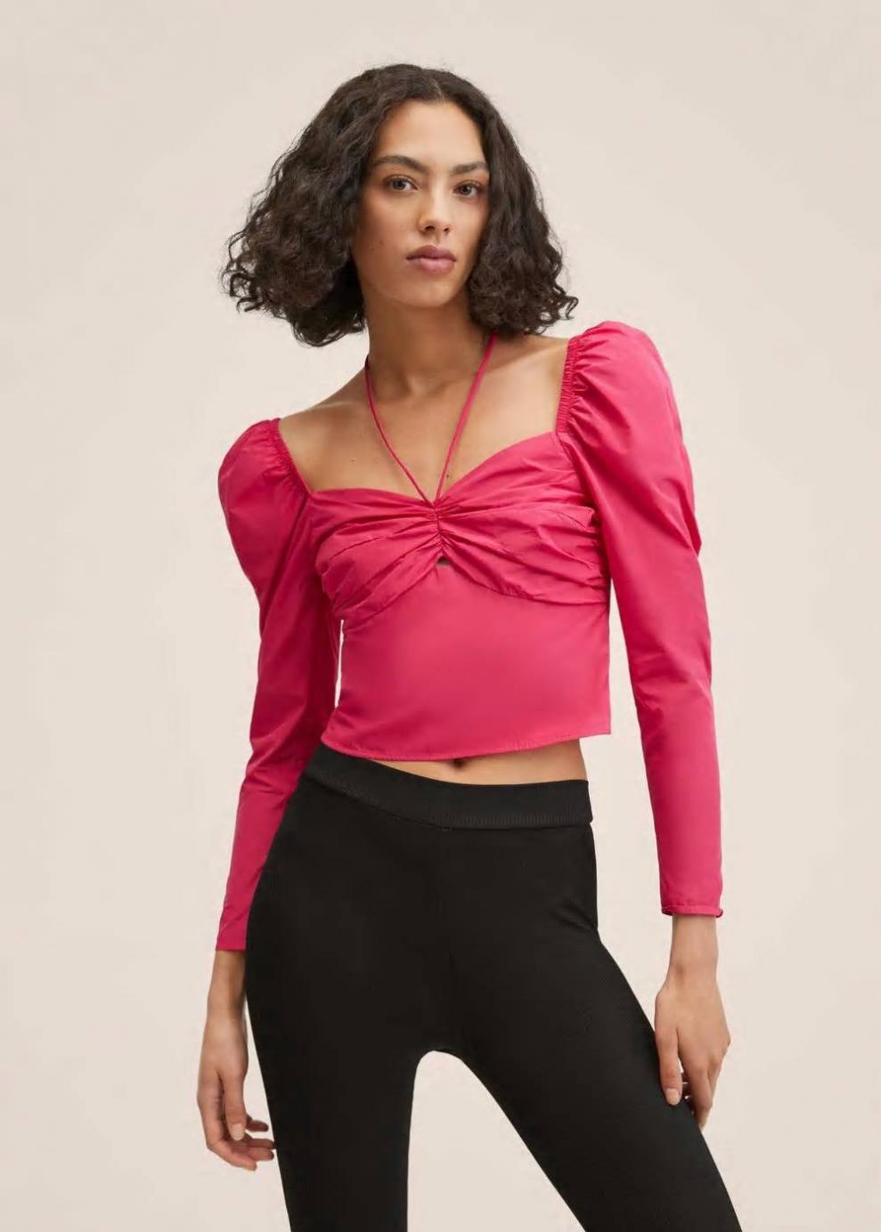 Diseño crop Diseño recto Cuello escotado Manga larga abullonada Fruncido elástico Detalle fruncido en el escote Lazo en el cuello Forro interior Cierre lateral de cremallera Colección fie…