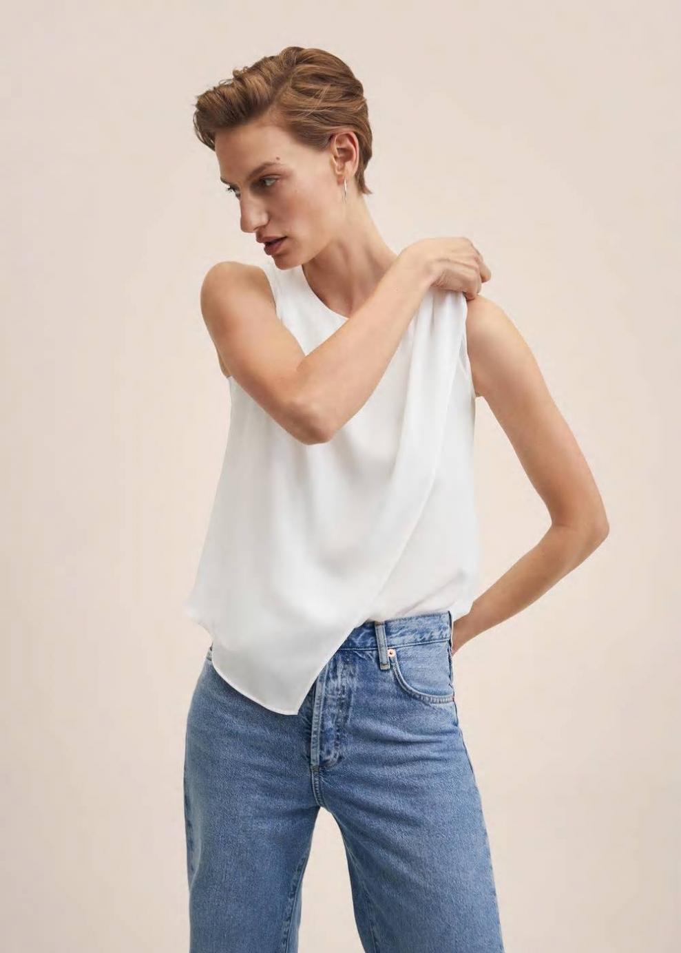 Diseño recto Diseño cruzado Cuello redondo Sin mangas Cierre de botones en el hombro Disponible Plus…