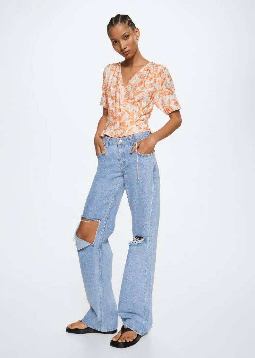 Tejido fluido Diseño evasé Diseño corto Diseño recto Estampado floral Cuello cruzado Manga corta Cierre de lazo lateral Cierre delantero Disponible Plus Las prendas etiquetadas como Committed son productos que han sido confeccionadas con fibras y/o procesos de producción sostenible, reduciendo así su impacto ambiental. El objetivo de Mango es respaldar la implementación de prácticas más comprometidas con el medio ambiente, aumentando así, el número de prendas sostenibles en su colección.