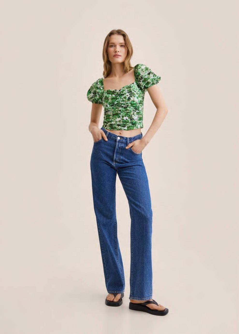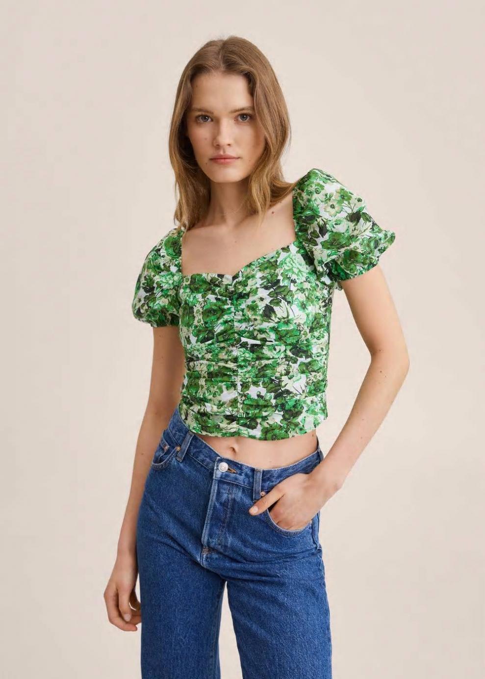 Mujer Blusa estampada fruncido Verde | Camisas Mango
