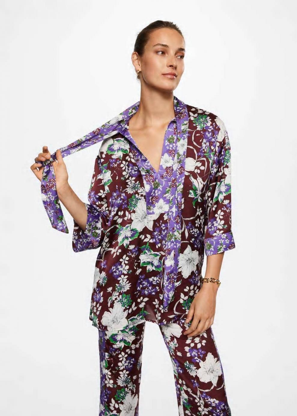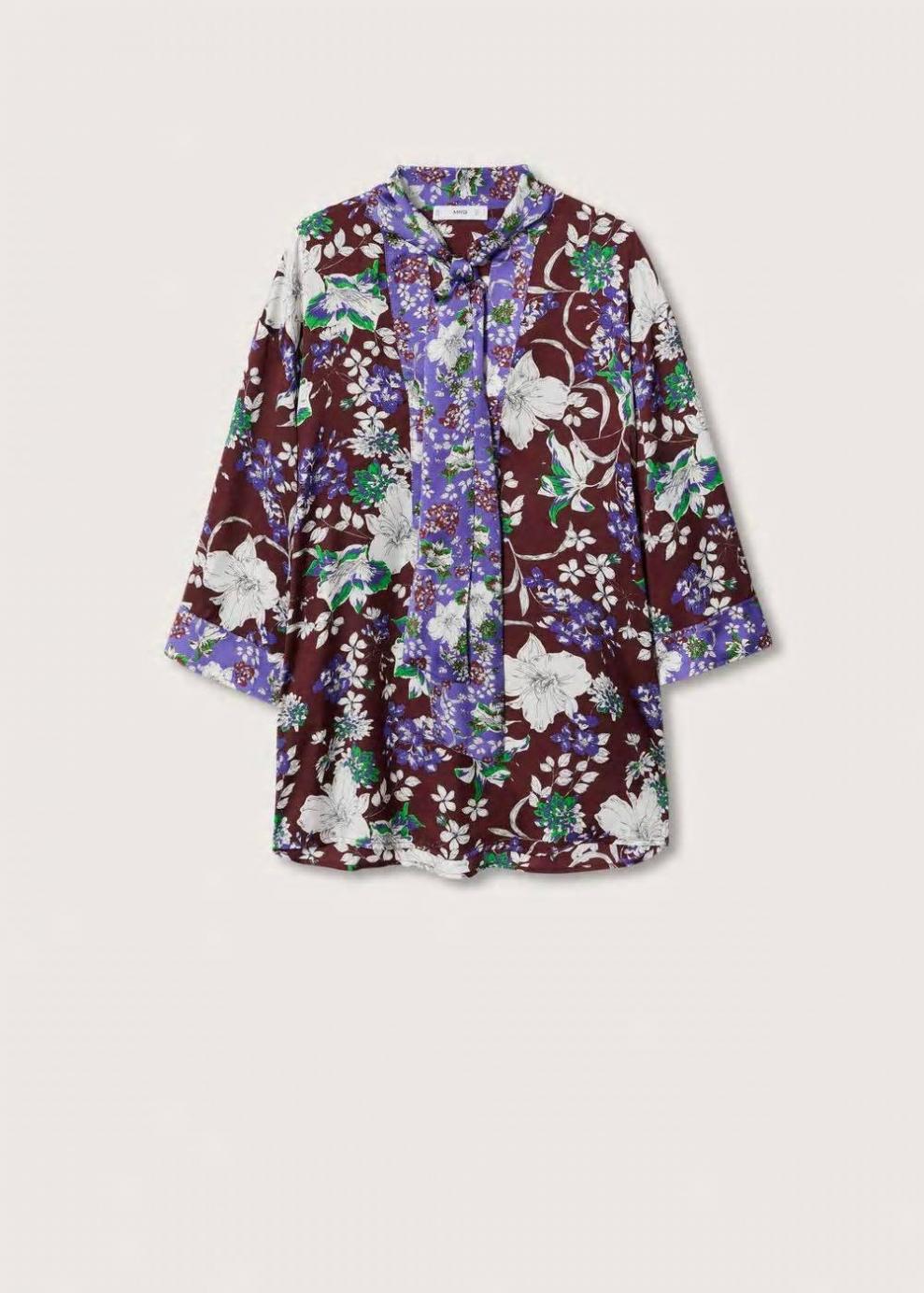Colección Committed Tejido fluido Estampado de flores Cierre de lazo en el cuello Aplique en contraste Manga tres cuartos Colección fiesta y ceremonia Las prendas etiquetadas como Committed son productos que han sido confeccionadas con fibras y/o procesos de producción sostenible, reduciendo así su impacto ambiental. El objetivo de Mango es respaldar la implementación de prácticas más comprometidas con el medio ambiente, aumentando así, el número de prendas sostenibles en su colección.