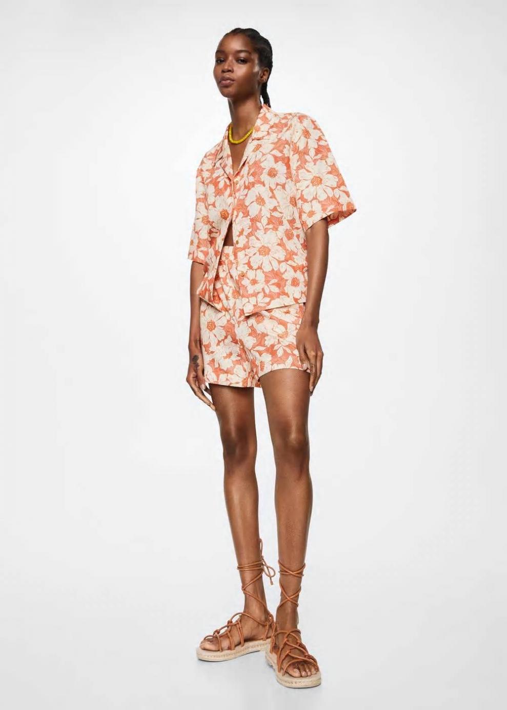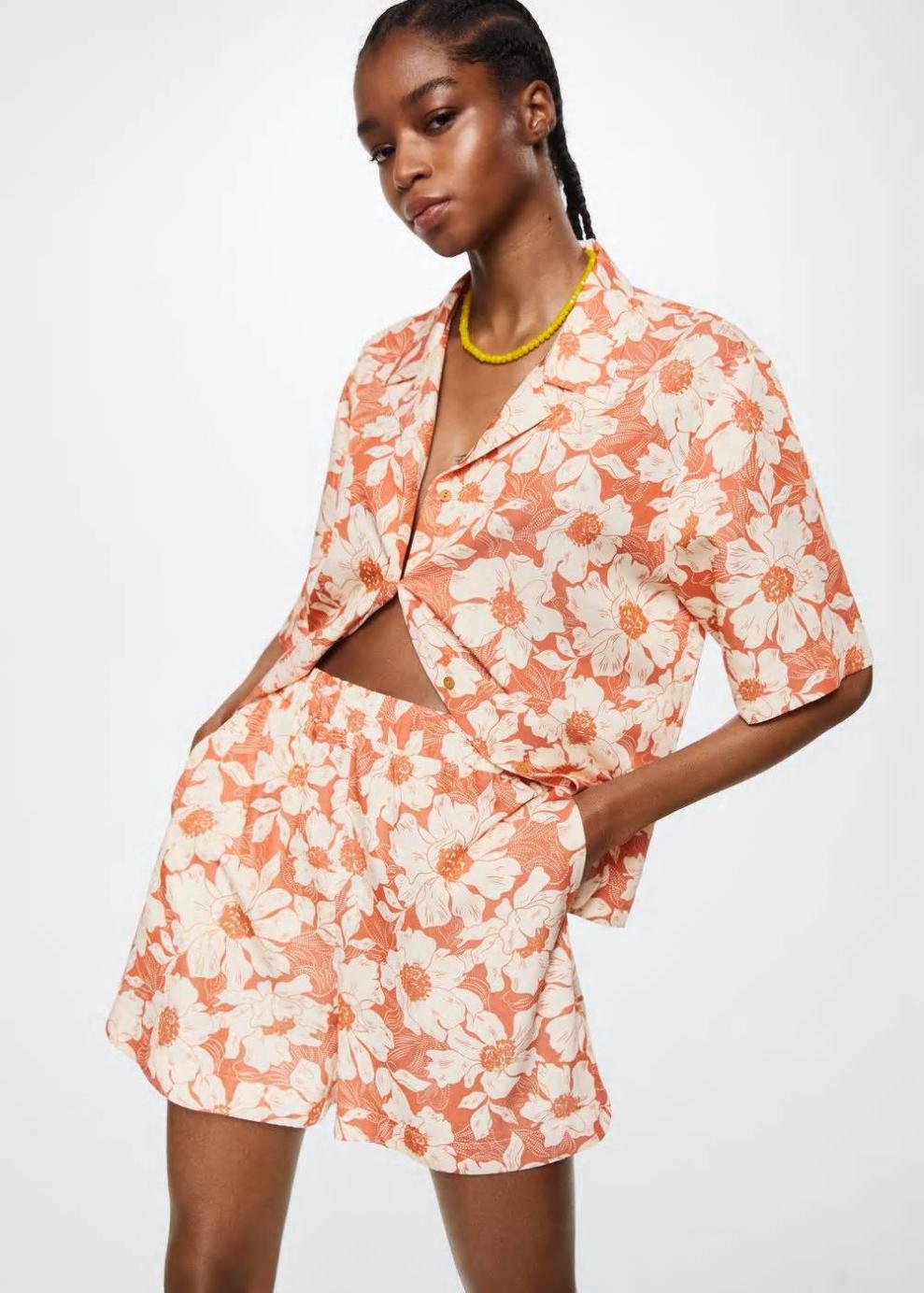Colección Committed Tejido fluido Diseño recto Estampado de flores Cuello camisero Cierre de botones en la parte delantera Total look Las prendas etiquetadas como Committed son productos que han sido confeccionadas con fibras y/o procesos de producción sostenible, reduciendo así su impacto ambiental. El objetivo de Mango es respaldar la implementación de prácticas más comprometidas con el medio ambiente, aumentando así, el número de prendas sostenibles en su colección.