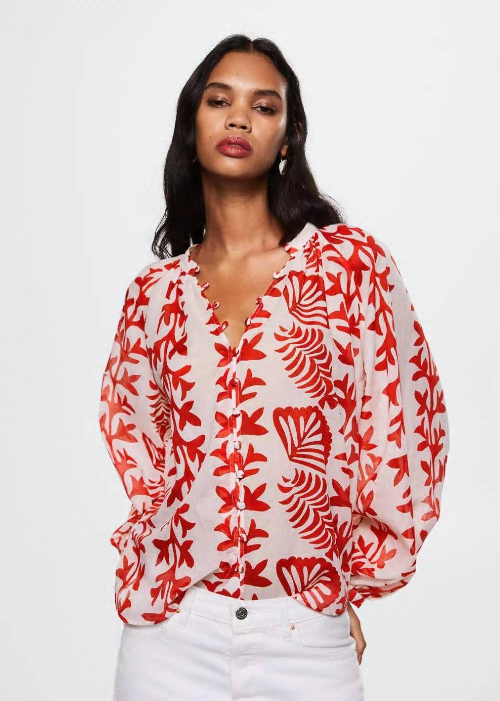 Colección Committed Tejido 100% algodón Tejido fluido Estampado floral Cuello mao Diseño oversize Cierre delantero Diseño estándar Diseño recto Total look Manga larga Cierre de botones en la parte delantera Las prendas etiquetadas como Committed son productos que han sido confeccionadas con fibras y/o procesos de producción sostenible, reduciendo así su impacto ambiental. El objetivo de Mango es respaldar la implementación de prácticas más comprometidas con el medio ambiente, aumentando así, el número de prendas sostenibles en su colección.