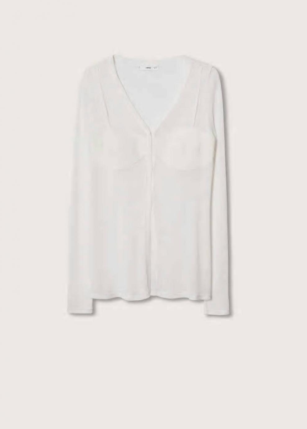 100% lyocell Tejido de punto fino Tejido semitransparente Diseño recto Diseño largo Diseño efecto bra Cuello de pico Manga larga Cierre de botones oculto Total look