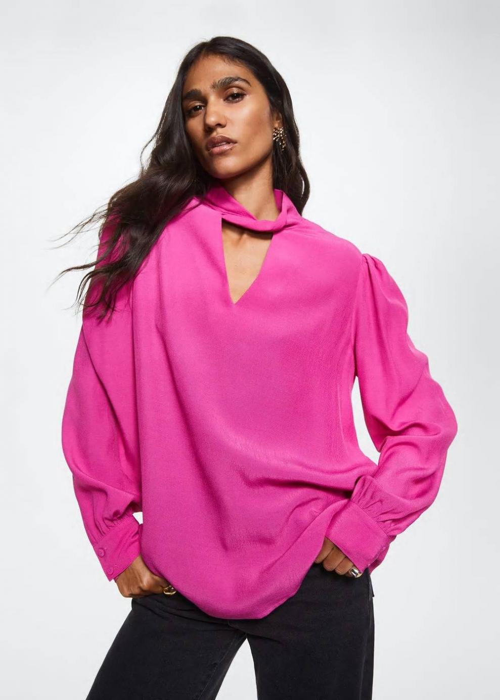 Colección Committed Tejido fluido Cuello cerrado Abertura en el cuello Manga larga abullonada Puños abotonados Cierre de botones en el cuello Las prendas etiquetadas como Committed son productos que han sido confeccionadas con fibras y/o procesos de producción sostenible, reduciendo así su impacto ambiental. El objetivo de Mango es respaldar la implementación de prácticas más comprometidas con el medio ambiente, aumentando así, el número de prendas sostenibles en su colección.