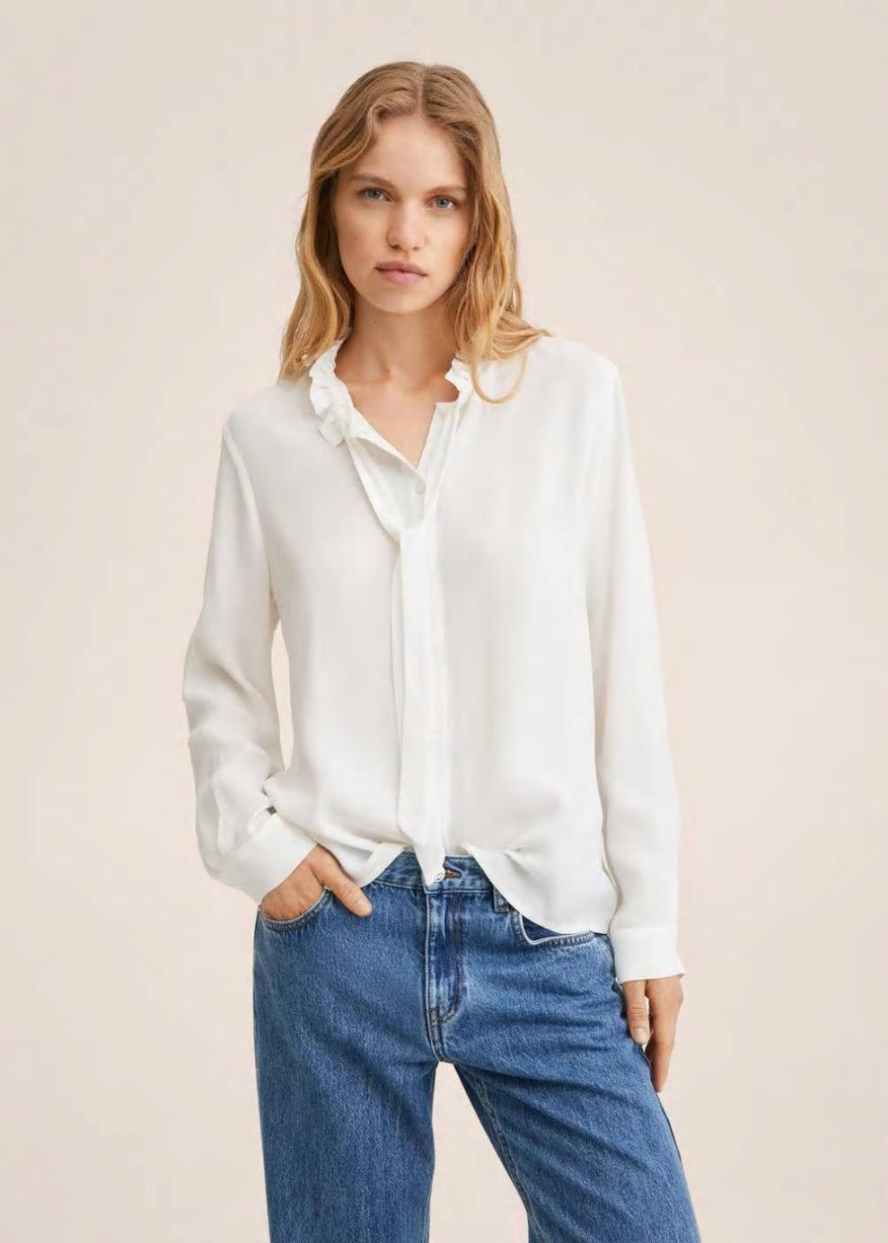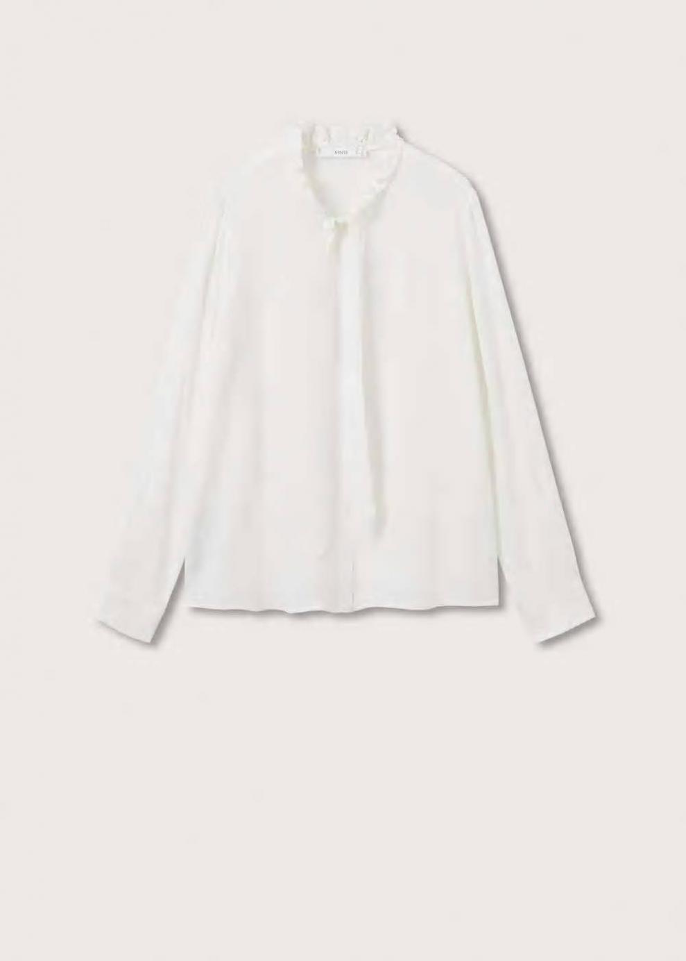 Tejido fluido Diseño oversize Diseño largo Cuello mao Detalle de volantes en el cuello Cierre de lazo en el cuello Manga …