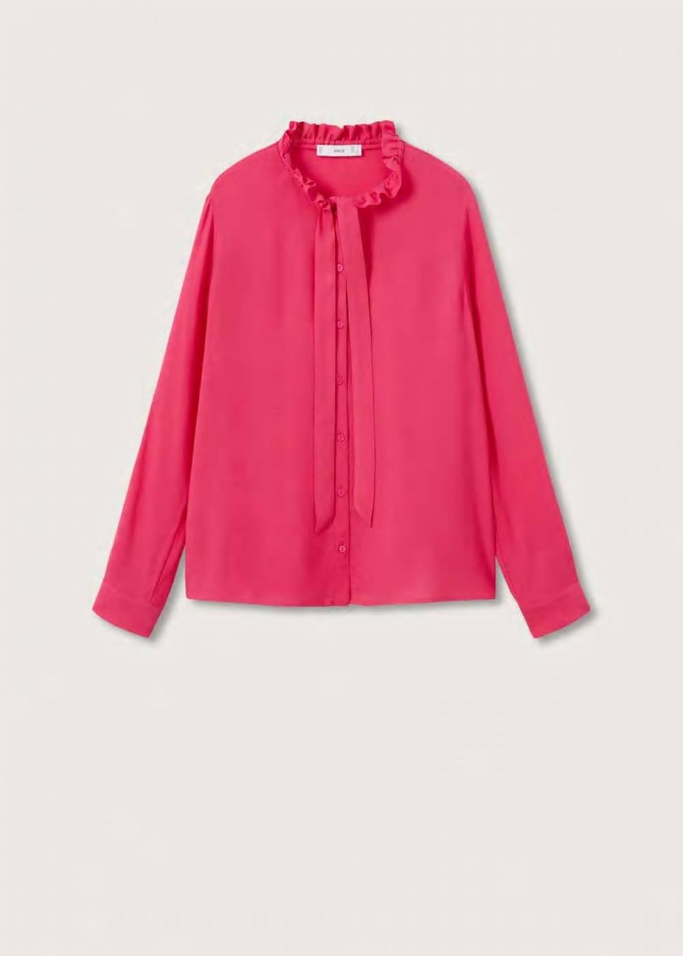 Tejido fluido Diseño oversize Diseño largo Cuello mao Detalle de volantes en el cuello Cierre de lazo en el cuello Manga larga con puños abotonados Cierre de botones e…