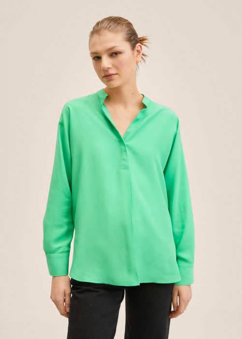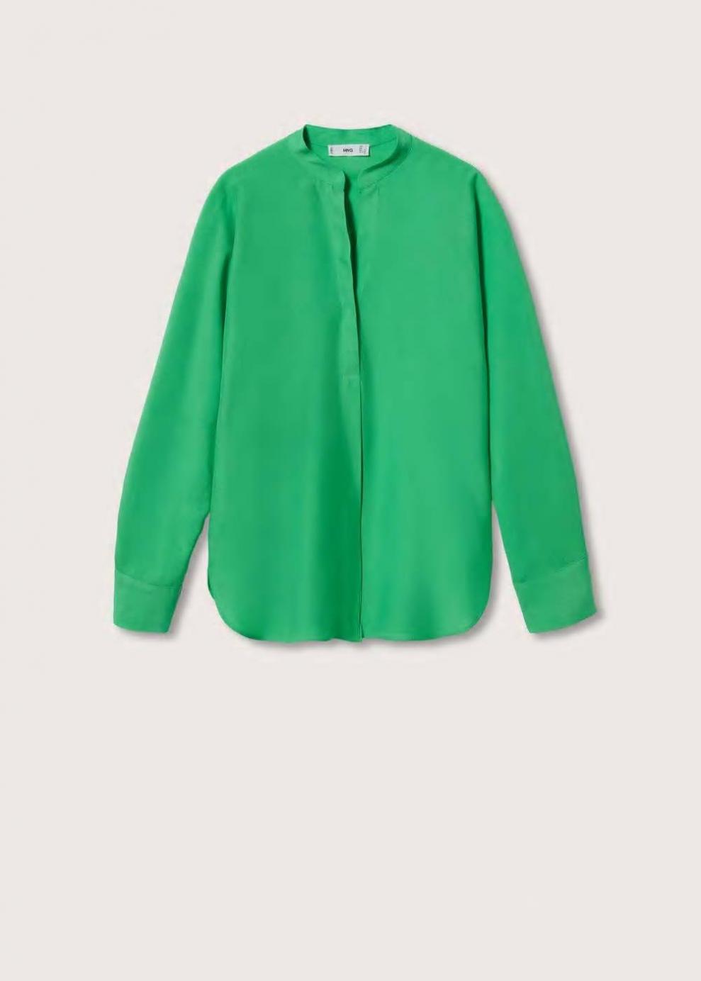 100% lyocell Diseño oversize Diseño largo Cuello mao Manga larga Cierre de botones oculto en la parte delantera