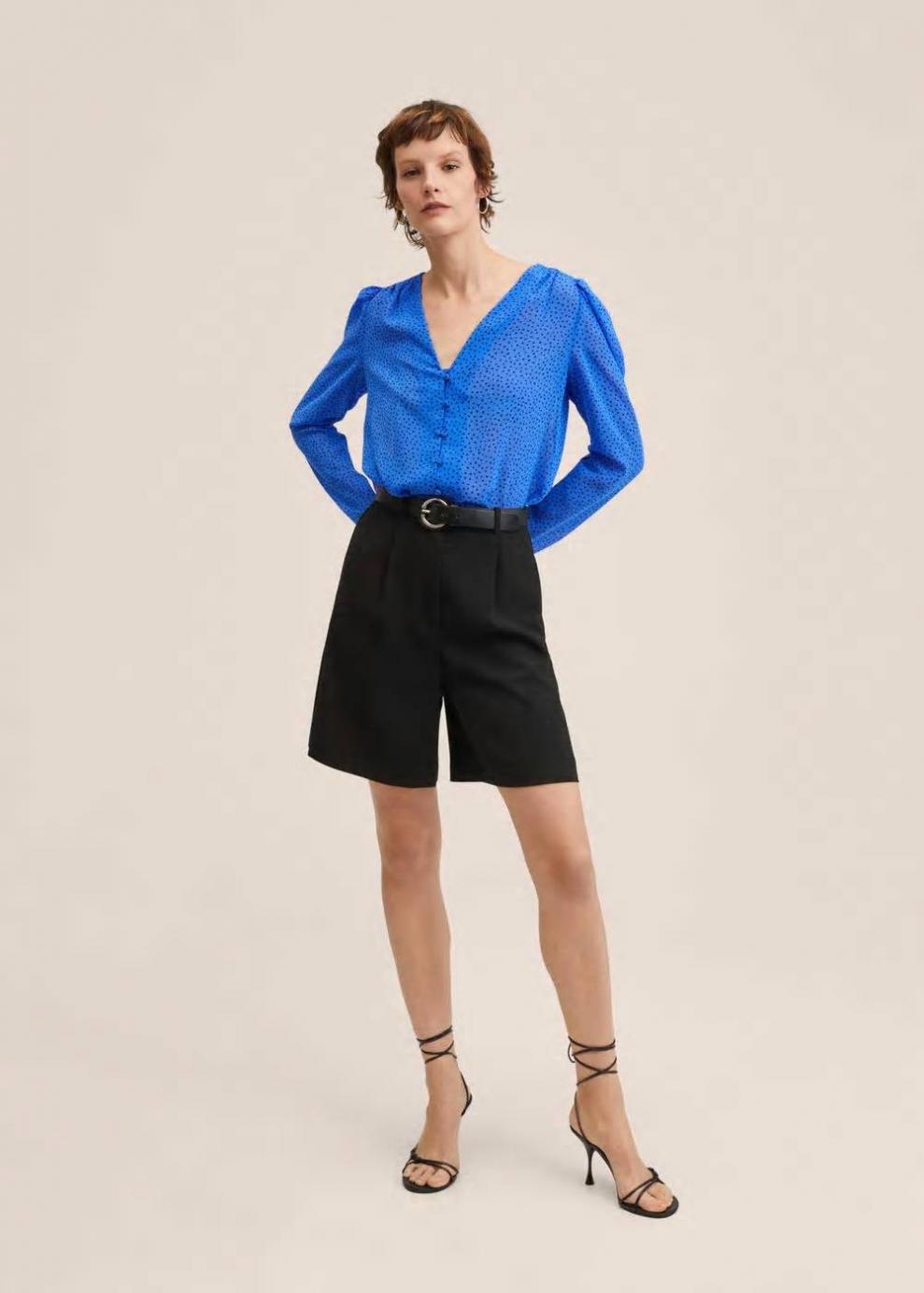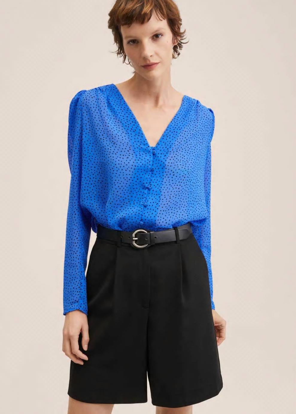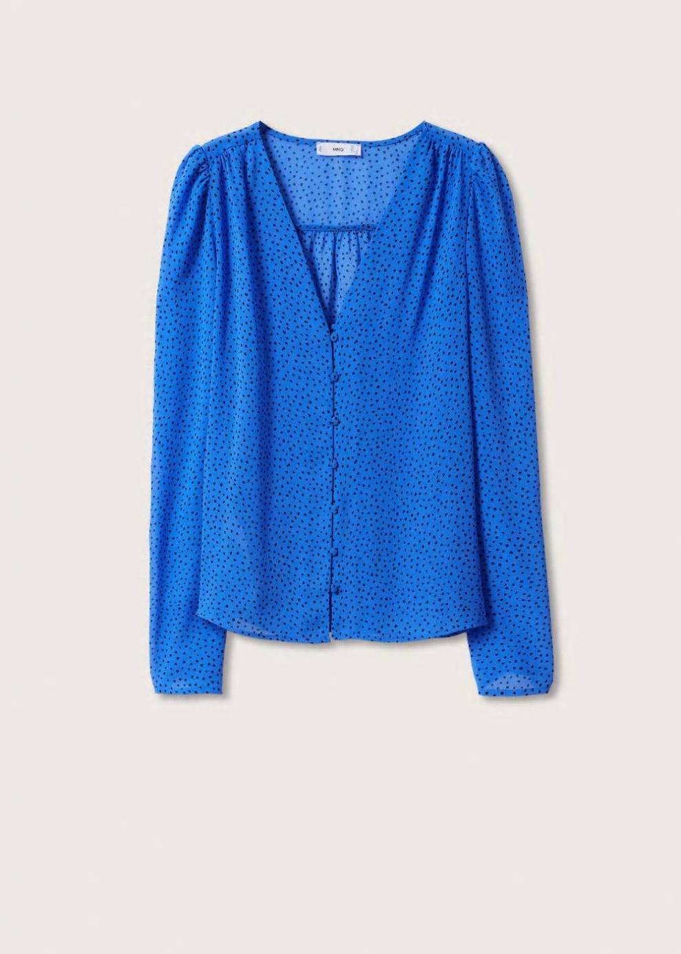 Estampado topos Estampado de flores Diseño recto Cuello pico Manga larga abullonada Cierre de botones en la parte delantera…