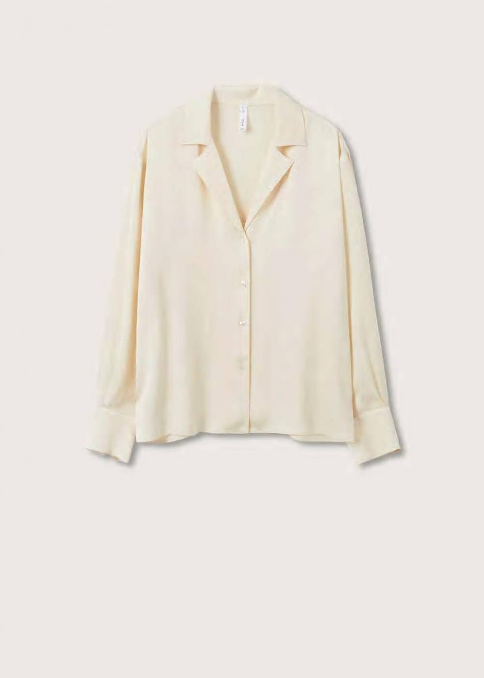 Mujer Blusa satinada botones Blanco Roto | Camisas Mango