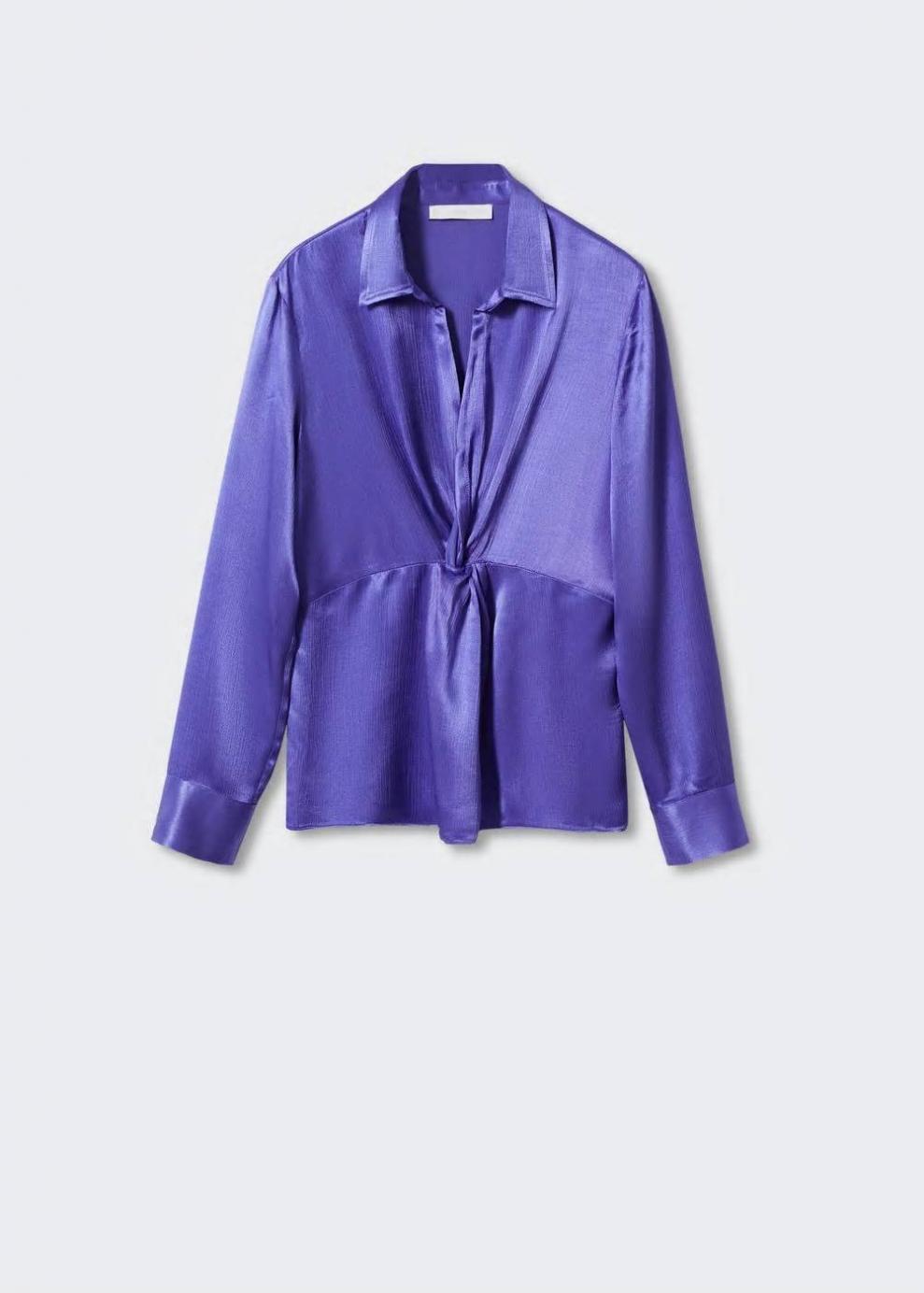 Tejido fluido Tejido satinado Diseño recto Cuello camisero Diseño recto Cuello escotado Detalle de abertura Manga larga Col…