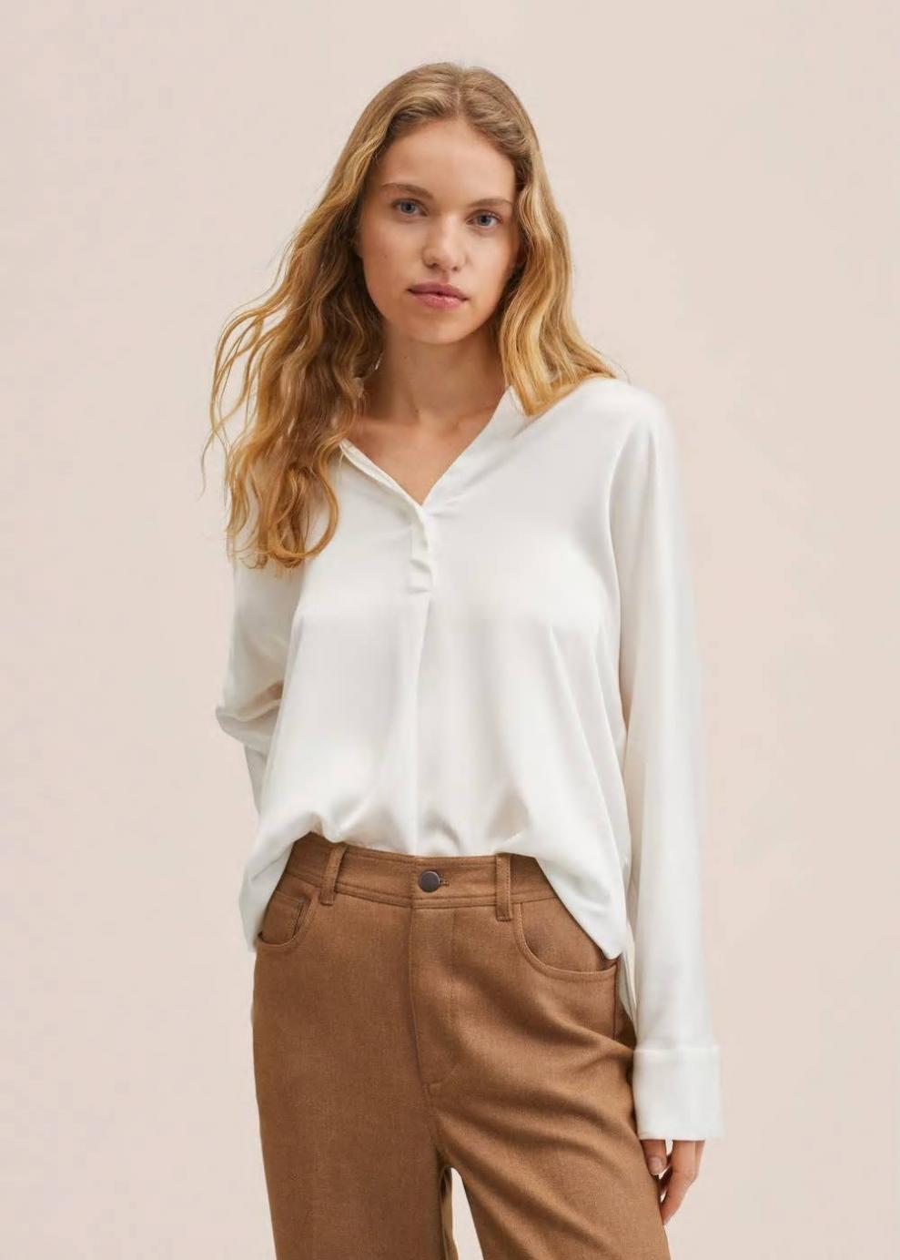 Mujer Blusa satinada oversize Blanco Roto | Camisas Mango