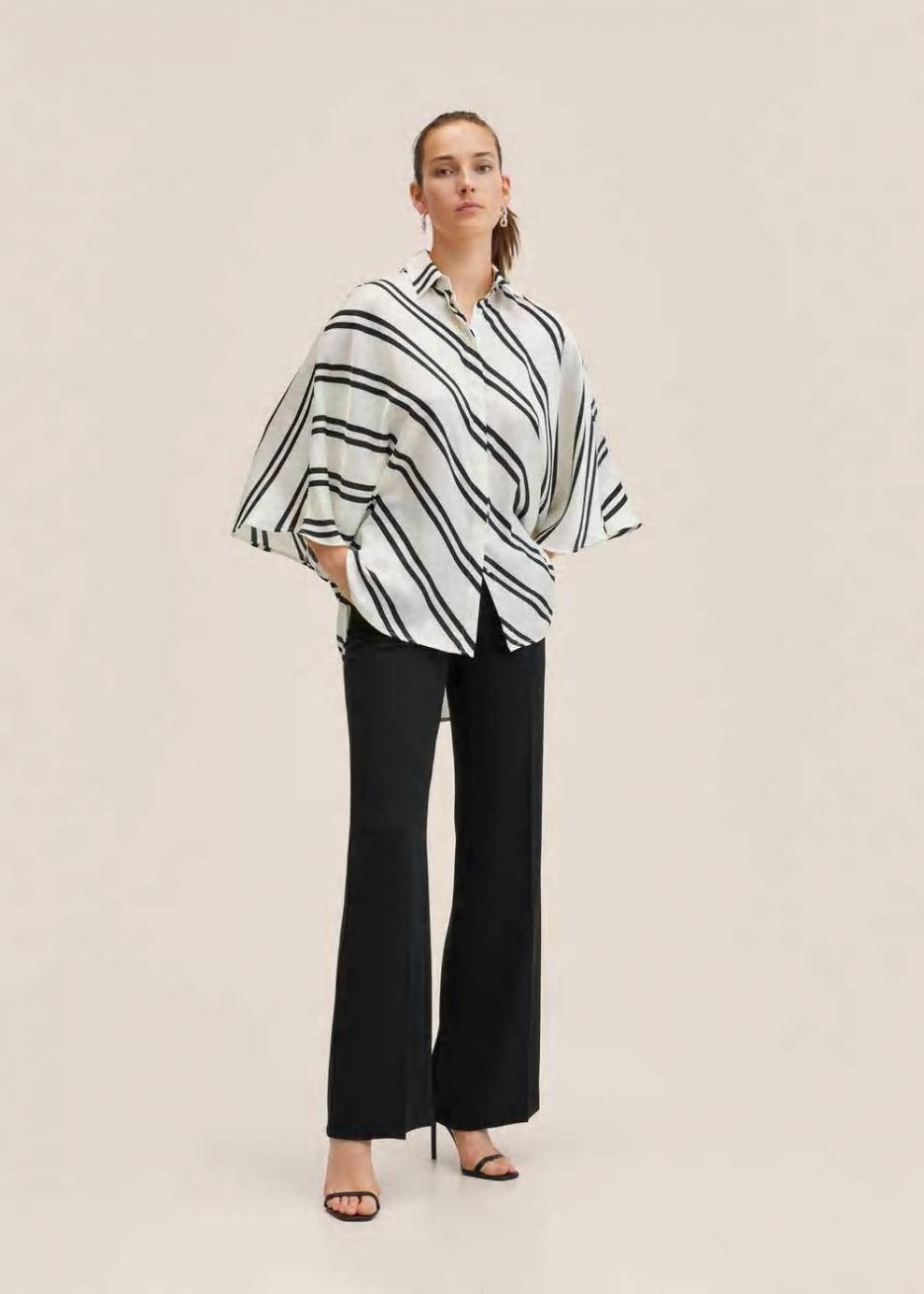 Tejido satinado Estampado de rayas Diseño oversize Diseño largo Cuello camisero Manga tres cuartos murciélago Cierre de botones oculto en la parte delantera Ramadan Collection Colección fiesta y ceremonia Total look