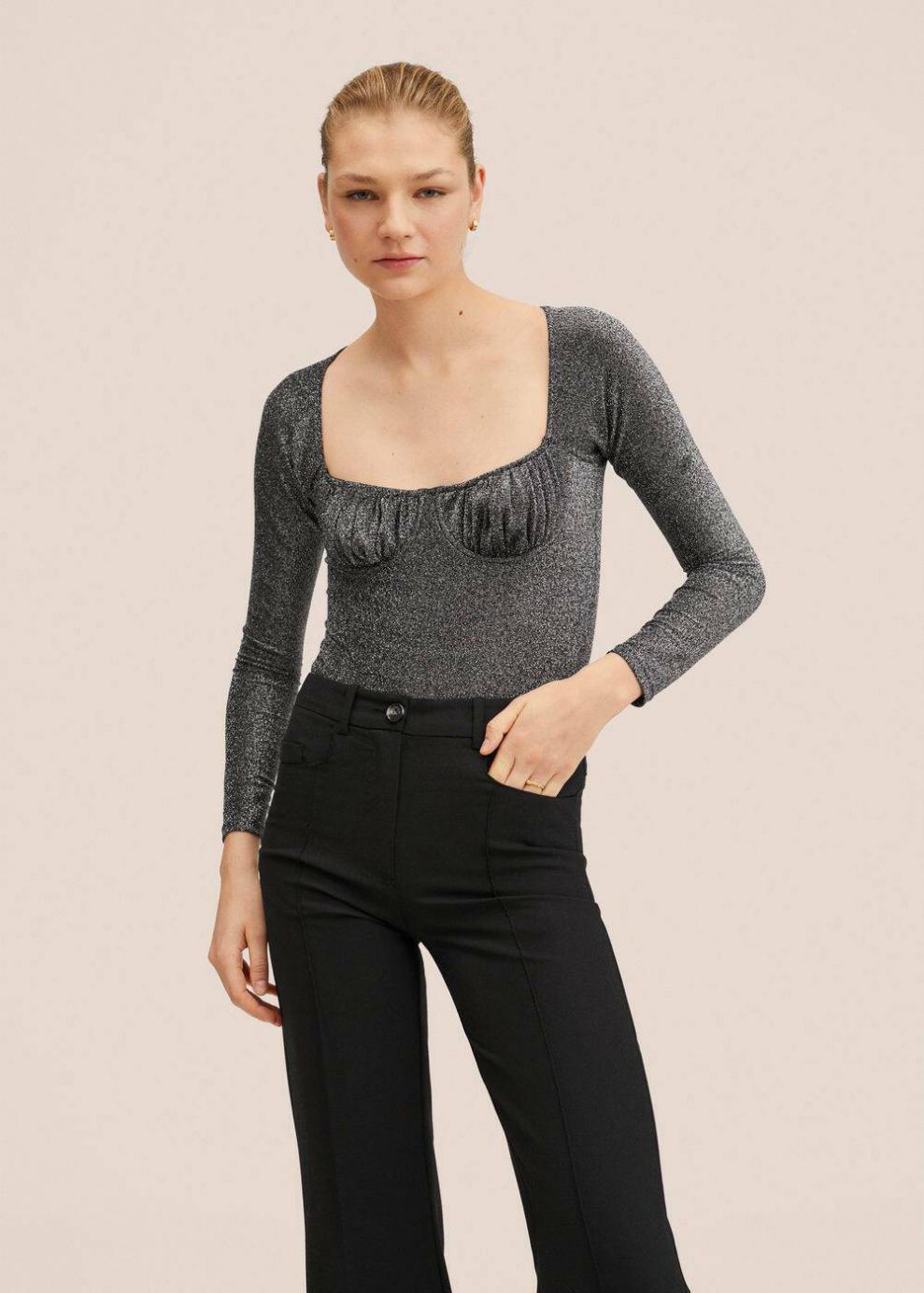 Tejido de lúrex Diseño clásico Diseño body Diseño efecto bra Escote cuadrado Manga larga Cierre de botones a presión Colección fiesta y ceremonia Forro interior de algod…