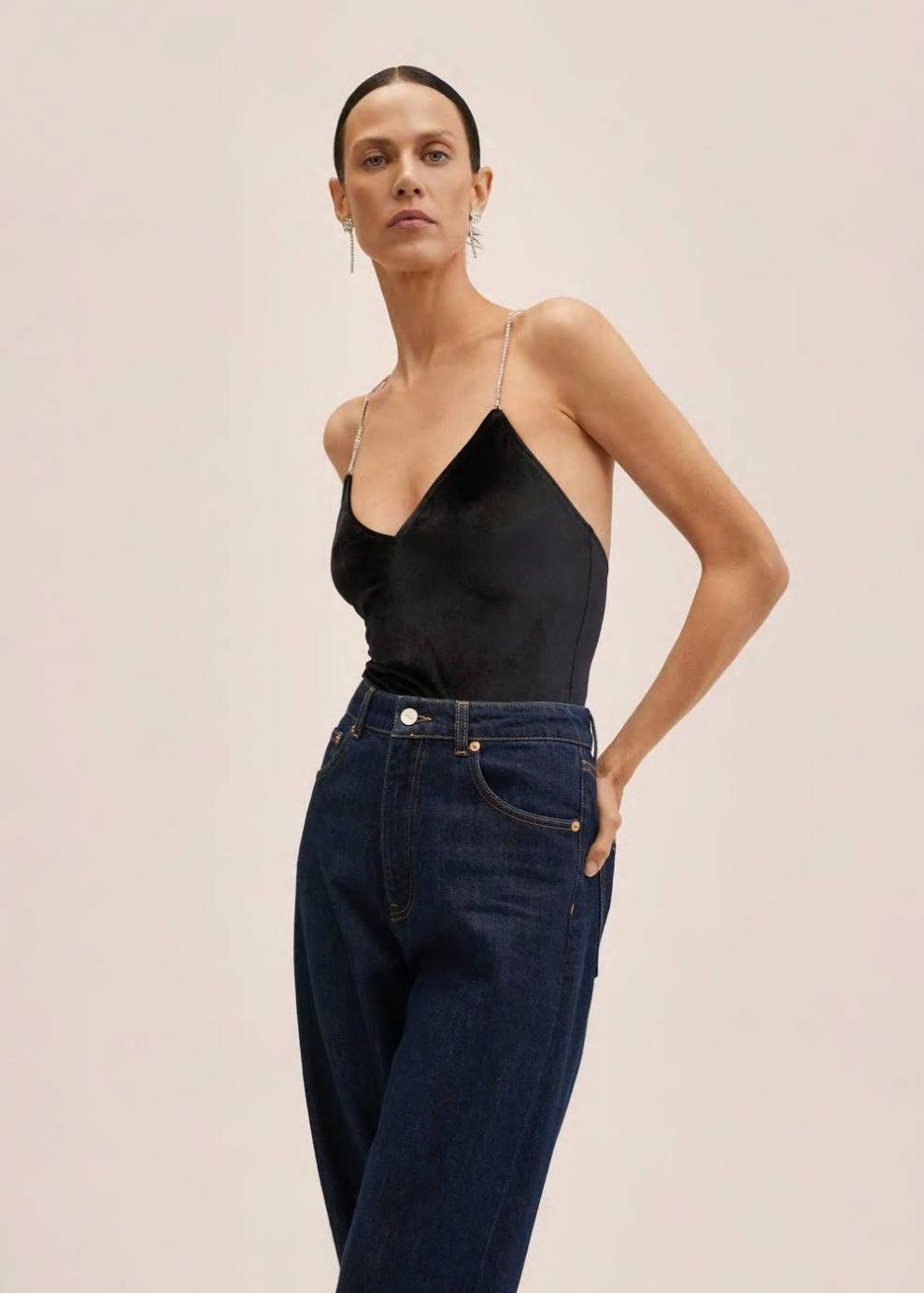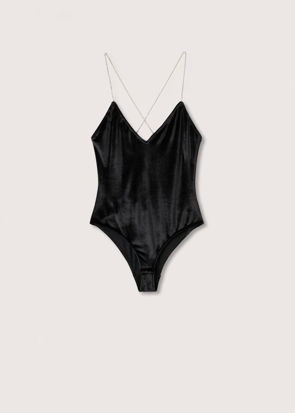 Tejido de terciopelo Diseño clásico Escote de pico Diseño de strass Tirantes cruzados Cierre de botones a presión Forro interior Colección fiesta y ceremonia…