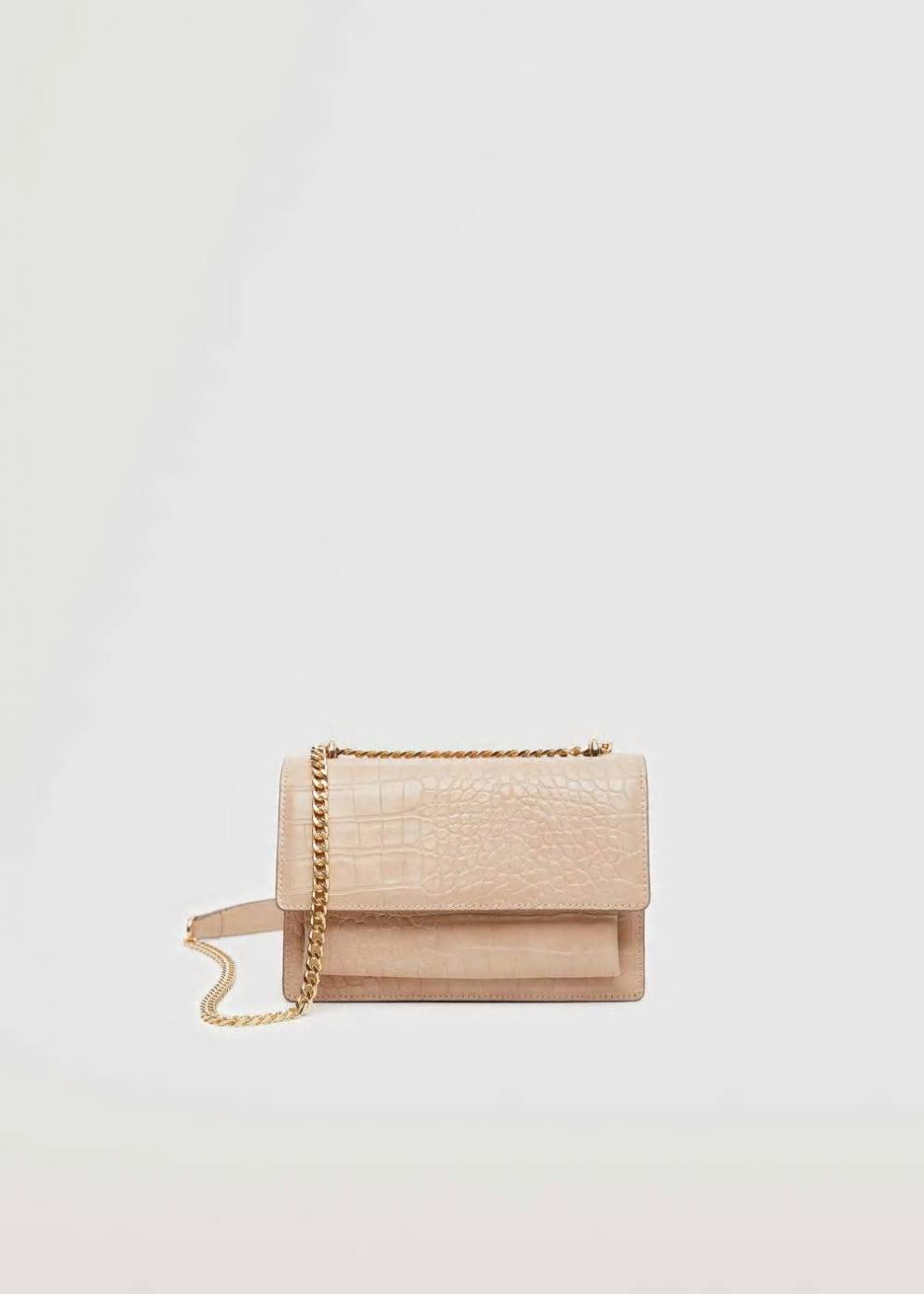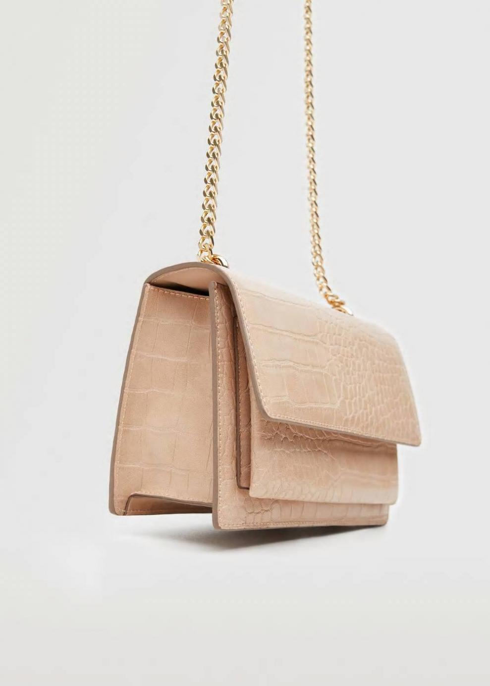 Bandolera Efecto cocodrilo Tamaño pequeño Asa larga de cadena Doble compartimento Solapa frontal Forro interior Cierre de botón