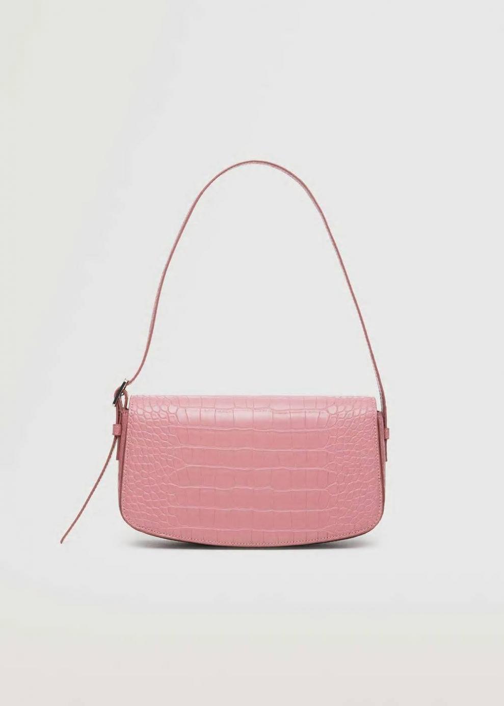 Efecto cocodrilo Tamaño mediano Solapa frontal Asa de hombro Asa ajustable Bolsillo interior Forro interior Cierre de botón…