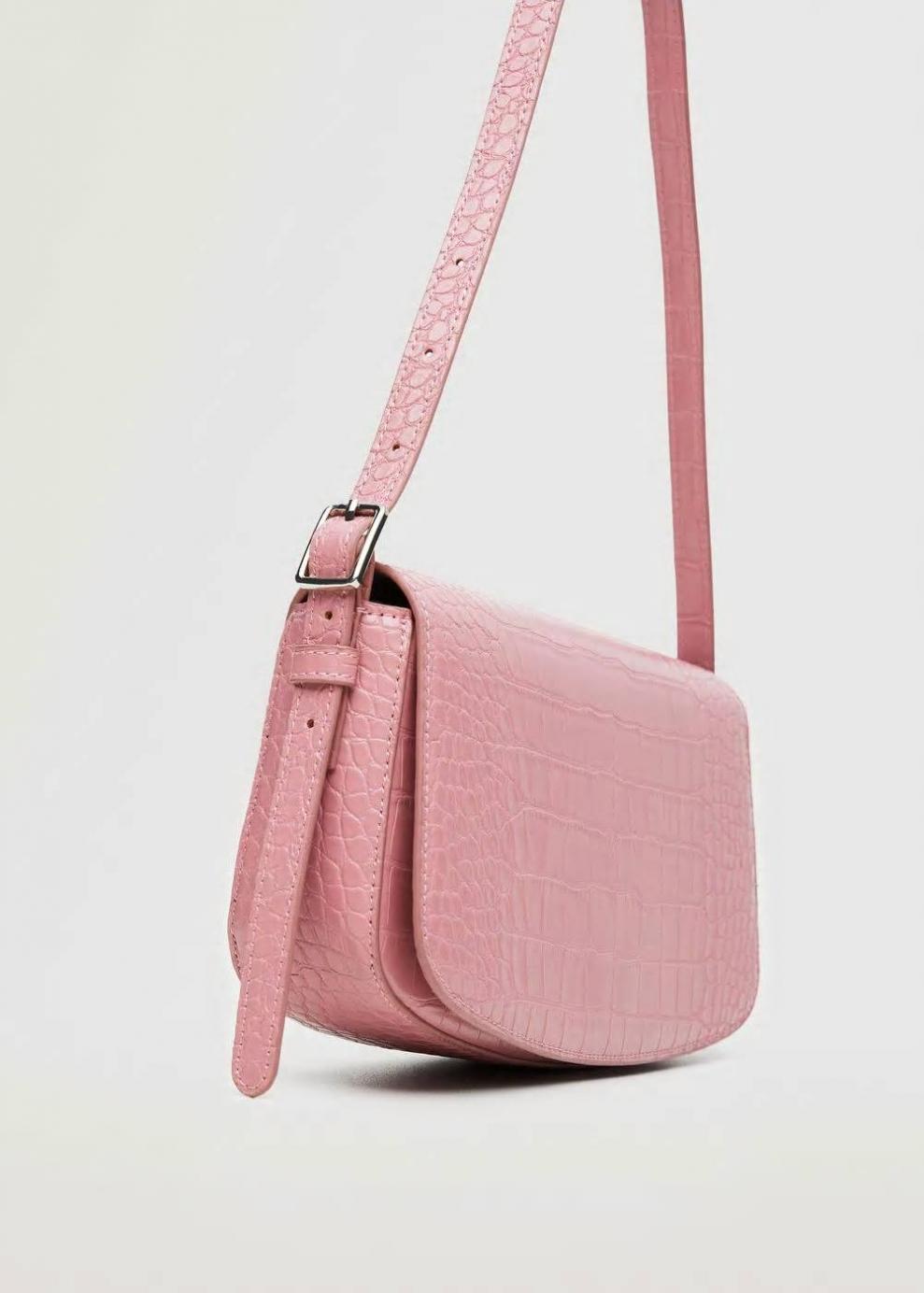 Efecto cocodrilo Tamaño mediano Solapa frontal Asa de hombro Asa ajustable Bolsillo interior Forro interior Cierre de botón