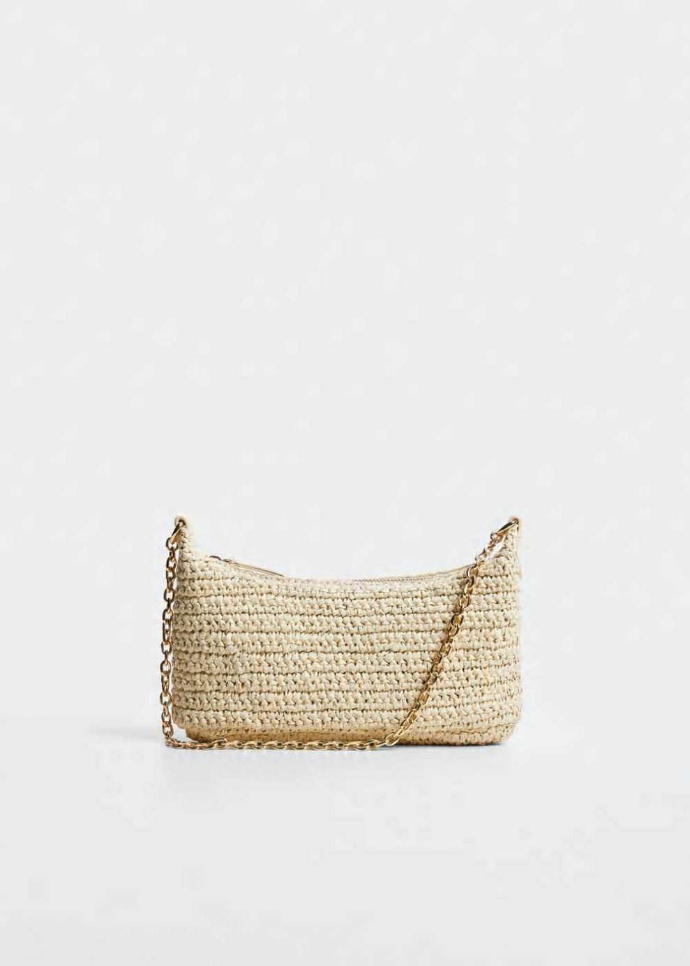 Colección Committed Handmade Tejido de rafia Tamaño pequeño Asa corta de cadena Forro interior Cierre de cremallera superior Colección baño Estilo boho Las prendas etiquetadas como Committed son productos que han sido confeccionadas con fibras y/o procesos de producción sostenible, reduciendo así su impacto ambiental. El objetivo de Mango es respaldar la implementación de prácticas más comprometidas con el medio ambiente, aumentando así, el número de prendas sostenibles en su colección.