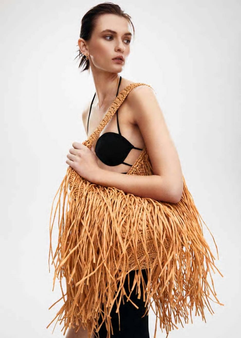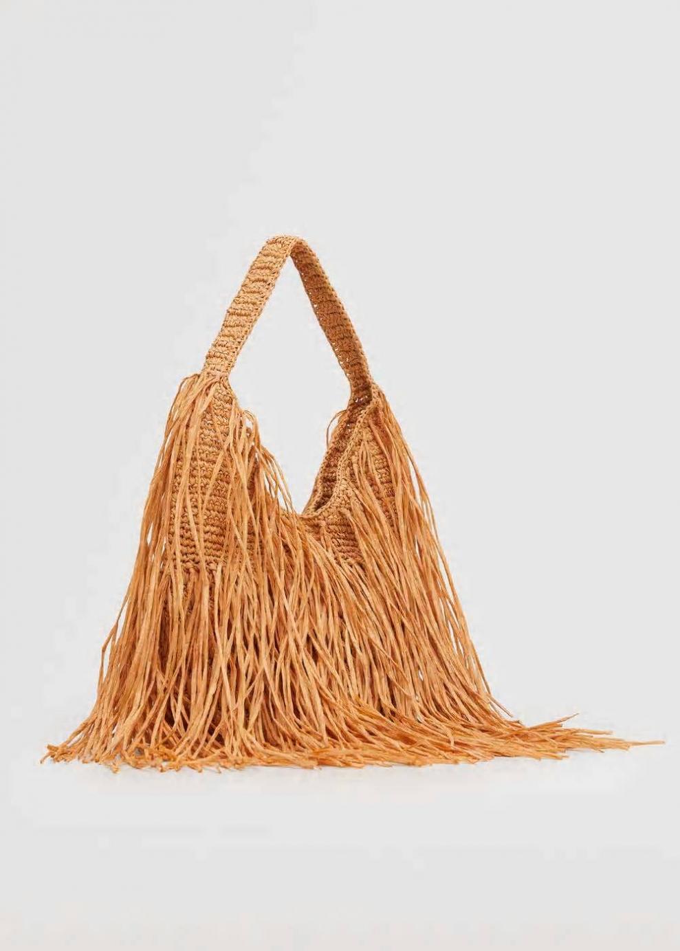 Mujer Bolso rafia flecos Marrón Tabaco | Bolso Mango