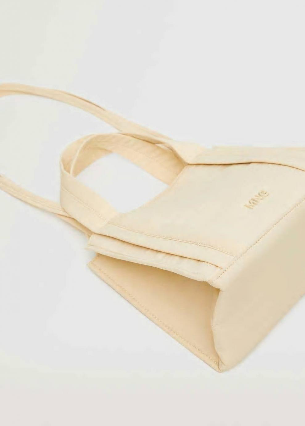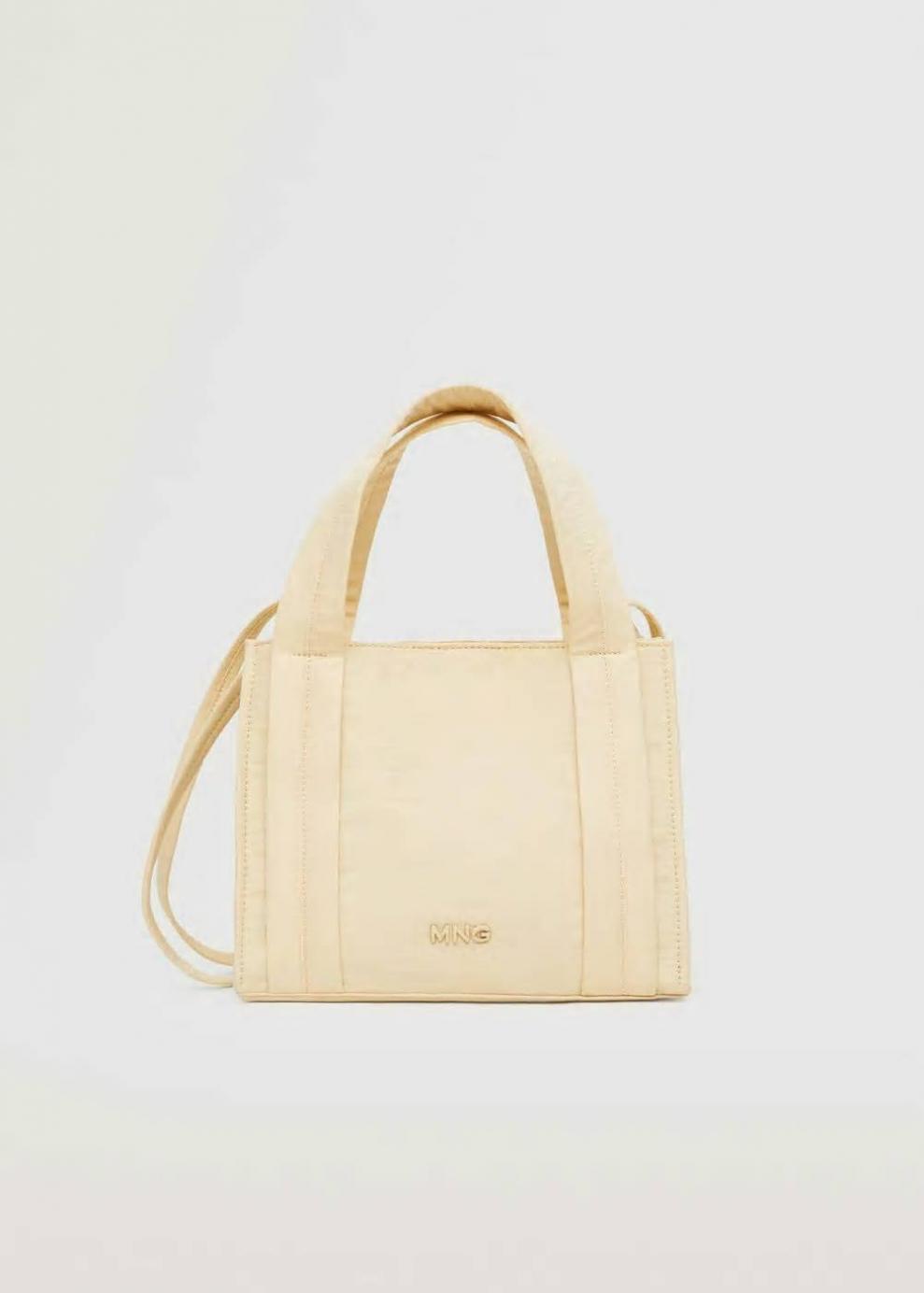 Tamaño pequeño Tejido de nylonTamaño mediano Estilo shopper Doble asa corta Doble asa larga Logo en relieve Cierre de imán interior Forro interior Las prendas etiquetadas como Committed son productos que han sido confeccionadas con fibras y/o procesos de producción sostenible, reduciendo así su impacto ambiental. El objetivo de Mango es respaldar la implementación de prácticas más comprometidas con el medio ambiente, aumentando así, el número de prendas sostenibles en su colección.
