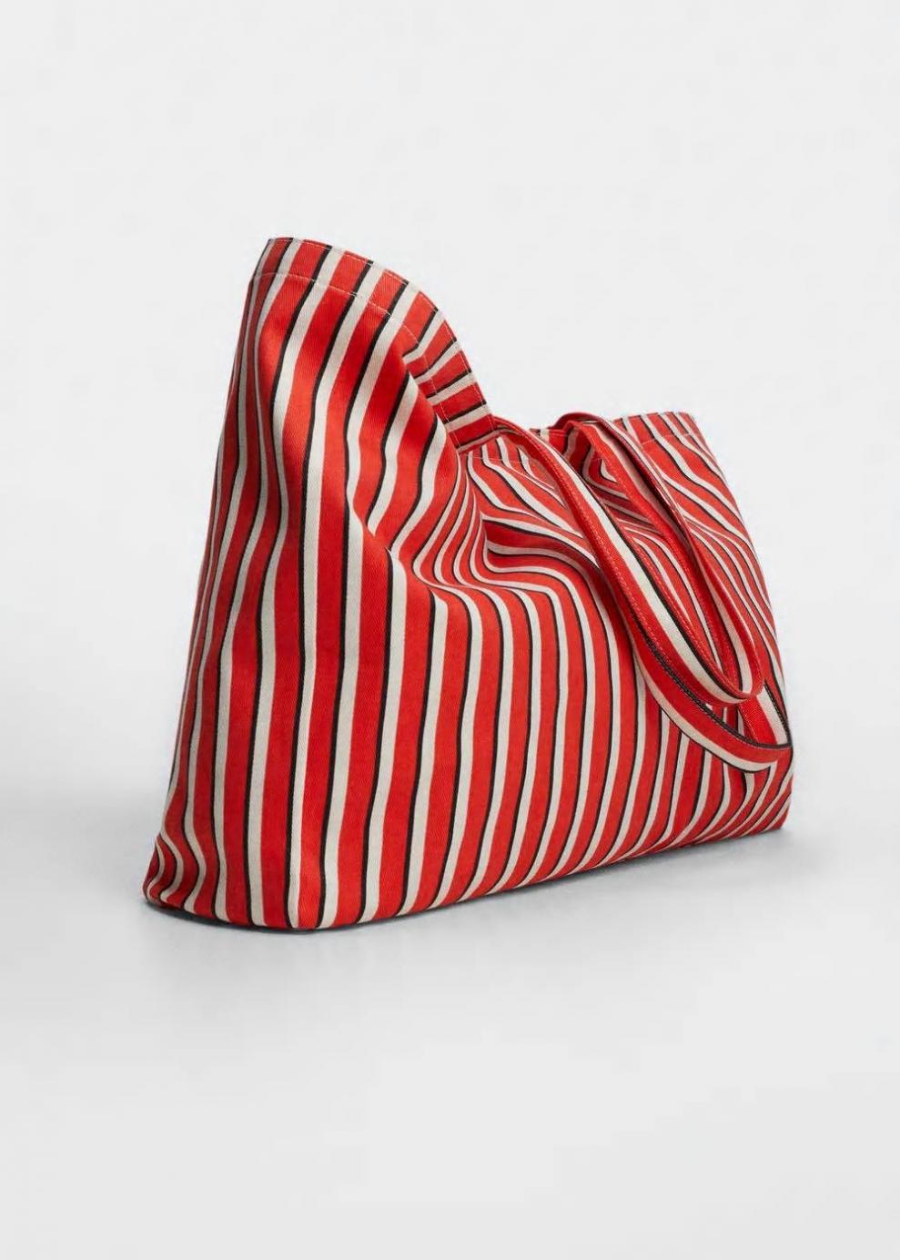 100% algodón orgánico Estampado de rayas Maxi shopper Tamaño grande Doble asa corta Bolsillo interior de cremallera Colección baño…