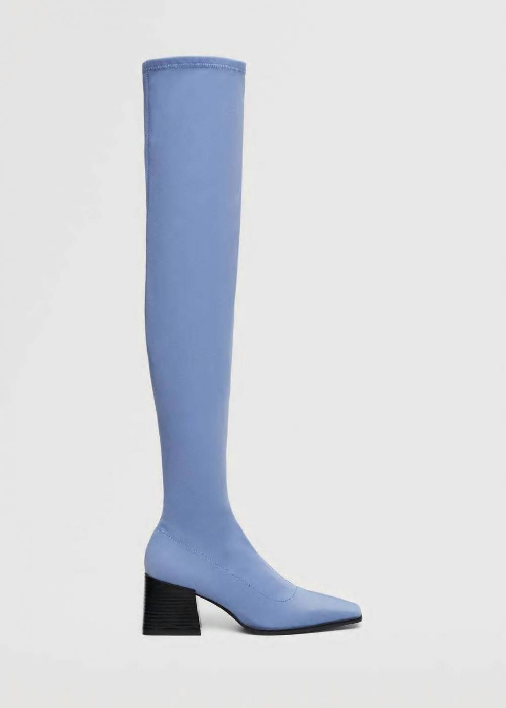 Tejido elástico Caña altaDiseño por encima de la rodilla Punta redonda Tacón bloque El tacón mide 7 cm…